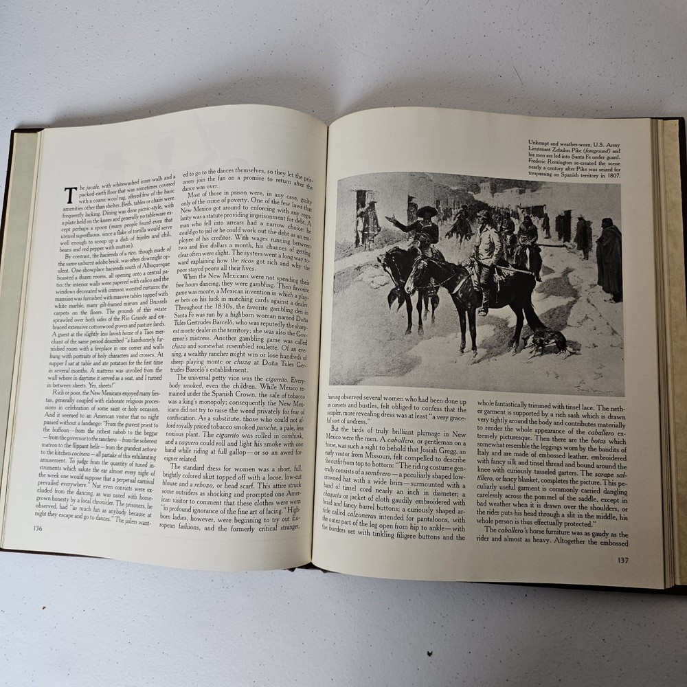 Explore the rugged landscapes and thrilling narratives of the American West with "The Spanish West" from The Old West series by Time Life Books. This hardcover picture book is a treasure trove of historical insight, featuring 240 pages of richly illustrated and engaging content that brings the Western genre to life. Published in 1979, this nonfiction piece is a must-have for enthusiasts of the Western topic, offering a comprehensive look at the iconic period through vivid storytelling and visuals. Crafted with a faux leather bound cover and presented in English, it's a perfect addition for collectors and readers alike who appreciate the intricate details and heritage of the Old West.