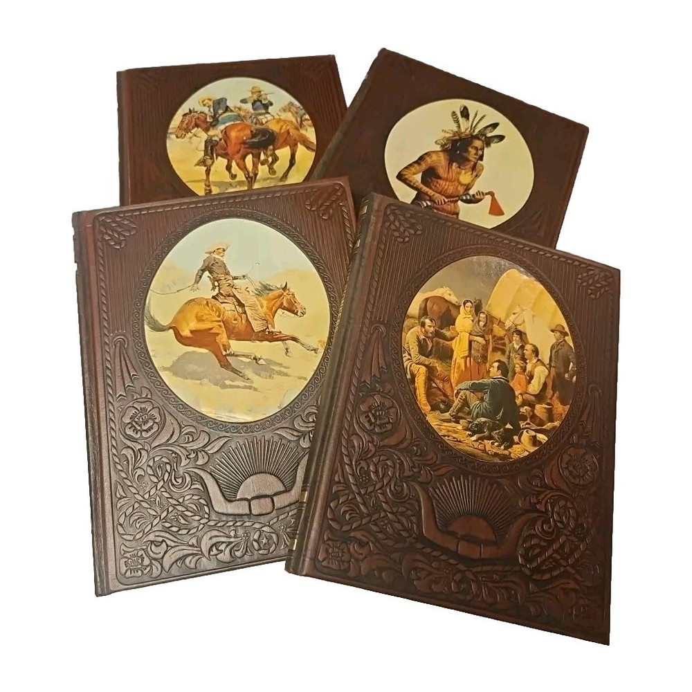 This is an estate find and shows some yellowing, but in good overall condition. Enhance your collection with this amazing Time Life lot of 4 books, featuring pioneers, cowboys, Indians, and soldiers. These classic hardback books are a must-have for any history and military enthusiast, and are sure to add a touch of nostalgia to your bookshelf. With special attributes like leather binding and original printing in 1980, these books are a rare find for collectors. The books are in English language and cover topics related to American West history. Don't miss out on the opportunity to own a piece of history.