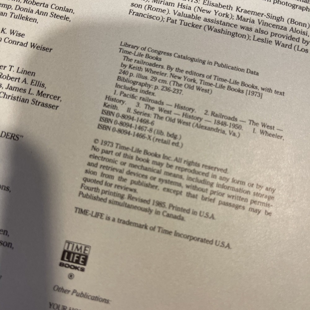 Time Life The Old West History Book THE RAILROADERS 1973 First thick blank page has some wear and corner is cut, see photos but no major issues to book....