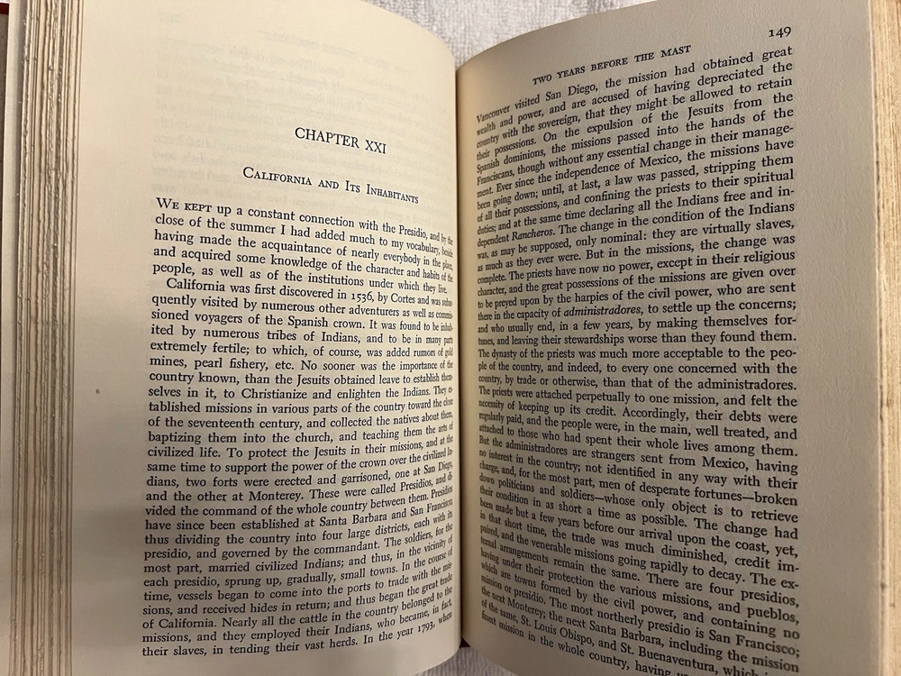 Two Years Before the Mast A Personal Narrative of Life at Sea (Hardcover) DANA, Richard Henry Two Years Before the Mast is a memoir by the American author Richard Henry Dana, Jr., published in 1840, having been written after a two-year sea voyage starting in the book, which takes place between 1834 and 1836, Dana gives a vivid account of "the life of a common sailor at sea as it really is". He sails from Boston to South America and around Cape Horn to California. Dana's ship was on a voyage to trade goods from the United States for the Mexican colonial Californian California missions' and ranchos' cow hides. They traded at the ports in San Diego Bay, San Pedro Bay, Santa Barbara Channel, Monterey Bay, and San Francisco Bay.Twenty-Fours Years After recounts his visit to California in 1859, after the Gold Rush, by which time the state had been totally transformed. This description may be from another edition of this product. Richard Henry Dana, Jr.'s Two Years Before the Mast is a realistic memoir of his 1834 voyage from Boston to California as a 19-year-old sailor. Published in 1840, the book is based on Dana's diary and is considered one of America's most famous maritime accounts. It challenges the romanticism of earlier maritime literature with vivid descriptions of storms, whales, and the harsh realities of life at sea In very good condition. Please review all photos as they are part of the description.
