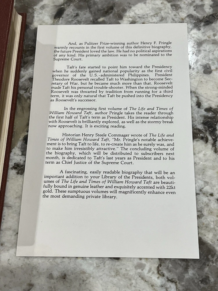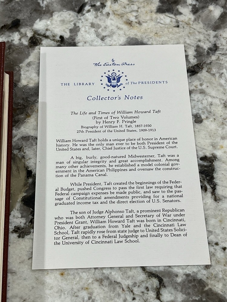 UNREAD Easton Press WILLIAM HOWARD TAFT Donald Anderson Presidents Book V1! Excellent almost Mint condition! Comes as shown and described...