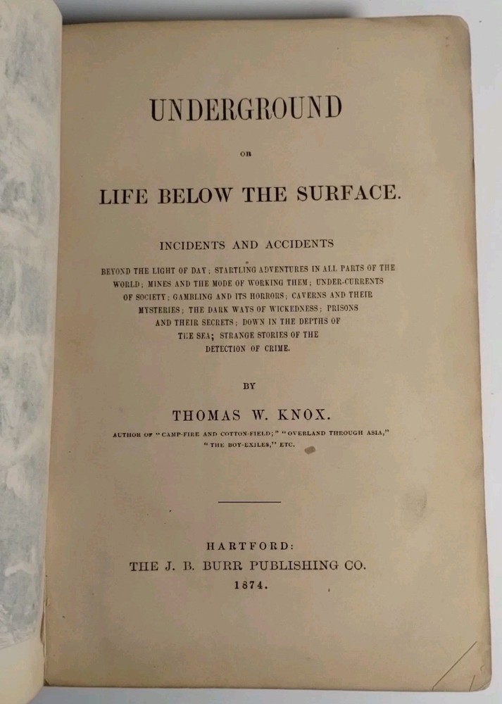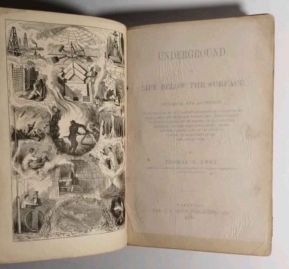 Delve into the gripping narrative of "Underground or Life Below the Surface," penned by Thomas W. Knox. Published in 1874 by J. B. Burr, this historical treatise offers a unique glimpse into the life and labor of the mining era. The book is a testament to the resilient human spirit and the challenges faced during North America's rich mineral history. Bound in a classic leather cover, this original edition is a treasure for collectors and enthusiasts alike. Illustrated pages enrich the text, providing visual context and enhancing the reading experience. As a significant work from 1874, it not only serves as a reference for historians but also as a collectible piece of Americana. In acceptable condition, no writing on the pages, all text pages are intact, the front board and 2 blank pages near the front are loose, edge wear. Shipped with USPS Media Mail Package Thank You for stopping! Please check out my other items.