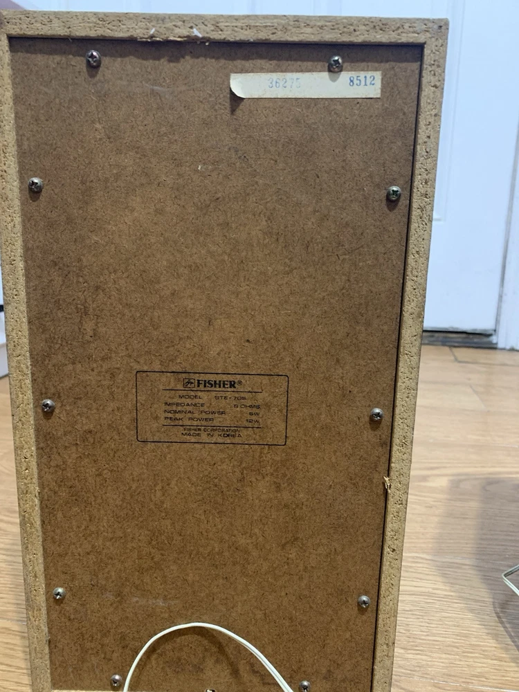 The product is a vintage Fisher MS-107 2-way speaker system, consisting of a pair of units manufactured in the United States. This speaker system, known for its brand reliability and quality, is designed to deliver high-quality audio output. The Fisher STE-705 speakers are a classic piece of vintage electronics, sought after by collectors and audio enthusiasts for their performance and historical significance.