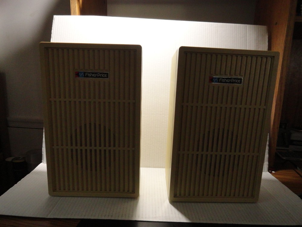 YOU ARE BIDDING ON A PAIR OF VINTAGE 1983 FISHER PRICE SPEAKERS = ************ SPEAKERS ONLY *********** - PREOWNED IN VERY GOOD CONDITION - **************** NON TESTED SOLD AS IS ****************** - SEE PHOTOS FOR EXACT CONDITION & WHAT IS INCLUDED ( USE ZOOM TO CHECK CONDITION ) YOU RECEIVE EXACT ITEMS PICTURED - COME FROM A NON SMOKING NON PET HOUSE - IF YOU HAVE ANY QUESTIONS PLEASE ASK . THANKS FOR LOOKING , PLEASE CHECK OUT MY OTHER AUCTIONS - I COMBINE SHIPPING COST