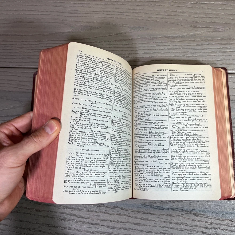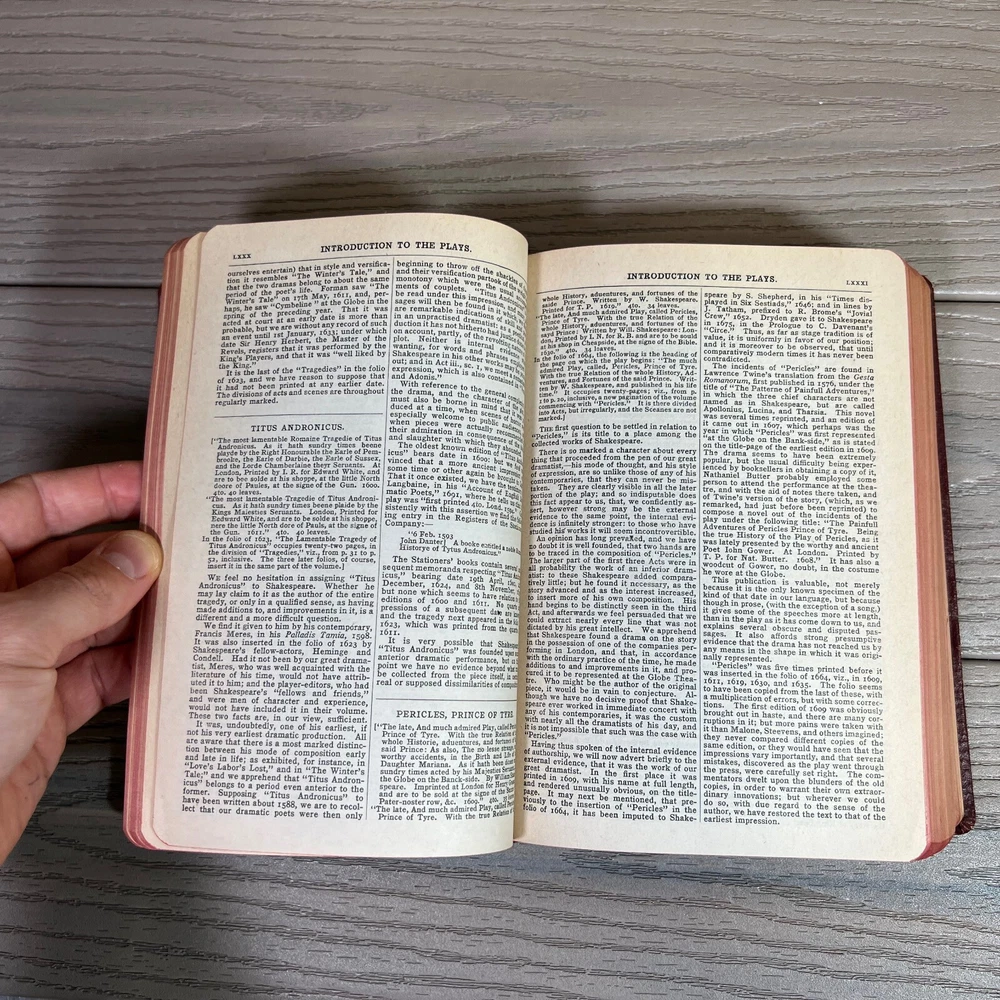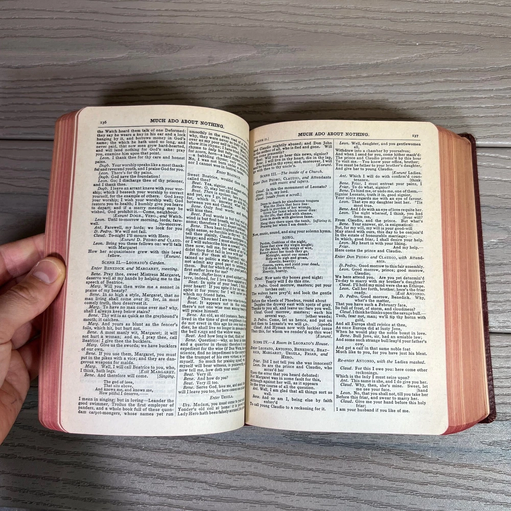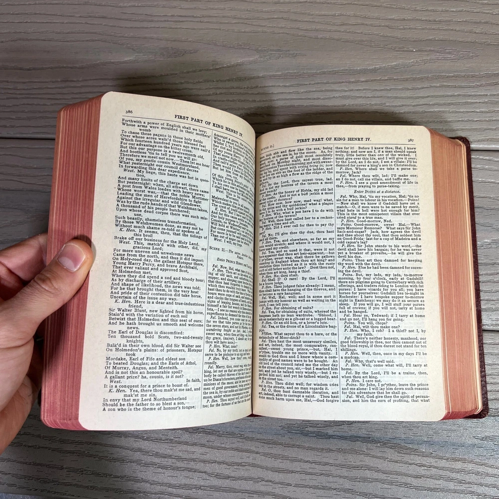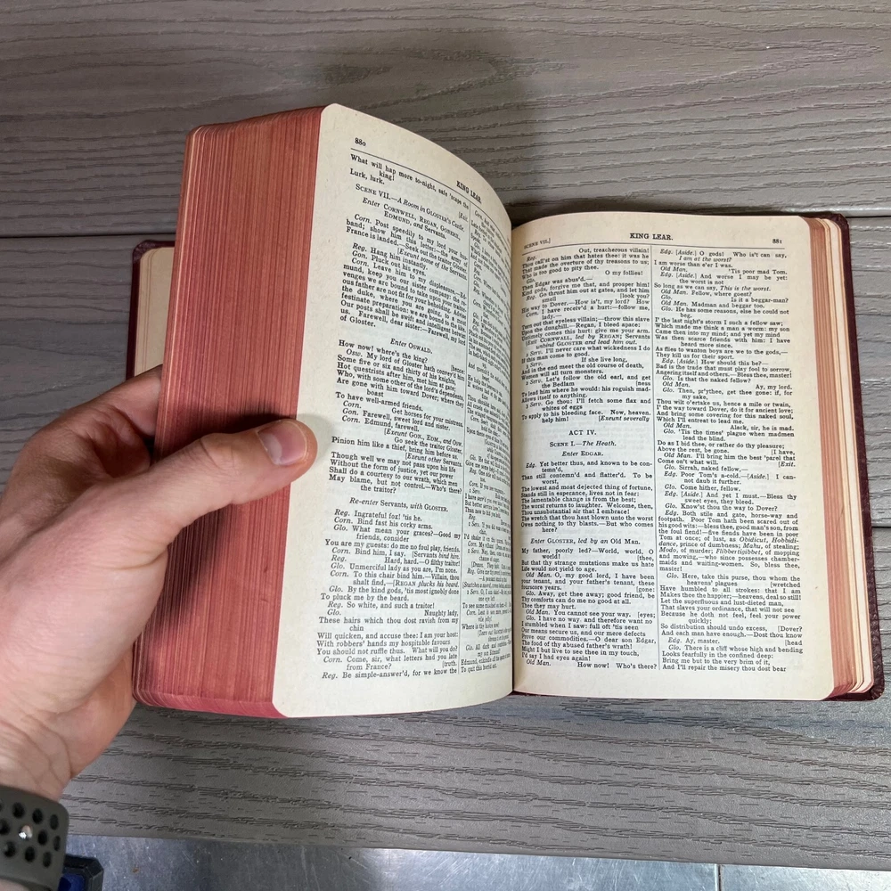 This vintage 1930 leather-bound Shakespeare collection is a true treasure! The beautifully illustrated pages and detailed notes bring the Bard’s works to life. Despite some expected wear on the cover, the interior is clean and well-preserved, making it perfect for reading or display. The historical context and character index add extra depth—a must-have for any literature lover. Feels like holding a piece of literary history!