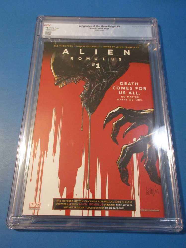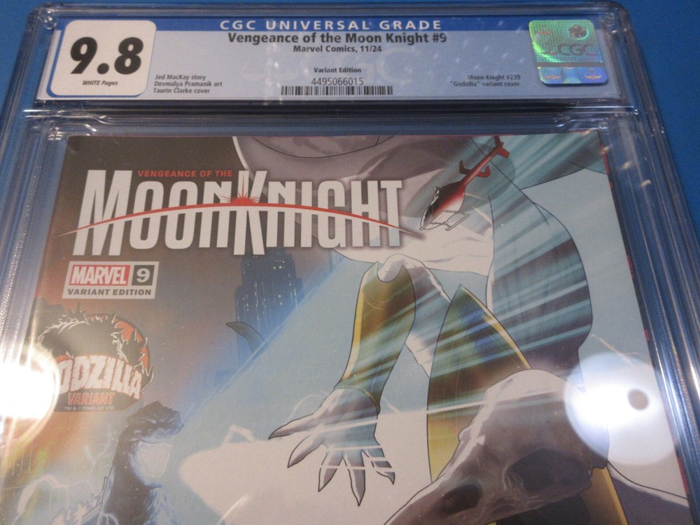 This auction is for Vengeance of the Moon Knight #5 variant in CGC 9.8 with a brand new case condition. This week we are selling an incredible collection including Amazing Spider-man , Silver Surfer, Dr. Strange, X-men, Iron Man, Hulk, Fantastic Four, Black Panther, Batman, CGC books and many other 1st appearance key issues. You are sure to find something you are looking for this week. Bonus Offer! I will add a bonus comic book for every 10 auctions you pay for on the same invoice this week. Our Shipping rates are: USA: 5 dollar flat rate for unlimited raw comics. Canada: 16 Dollars for the 1st comic and 1.50 each after that. International: 18 dollars for the 1st comic and 1.50 each after that. CGC books are 11.99 flat rate for up to 20 CGC slabs in the USA , 22 bucks and 10 combined for Canada and 28 bucks and 14 combined for international. Feel free to ask questions. I guarantee superfast Domestic shipping! ...to open their eyes...that they may receive forgiveness of sins and a place among those who are sanctified by faith in me. Acts 26:18