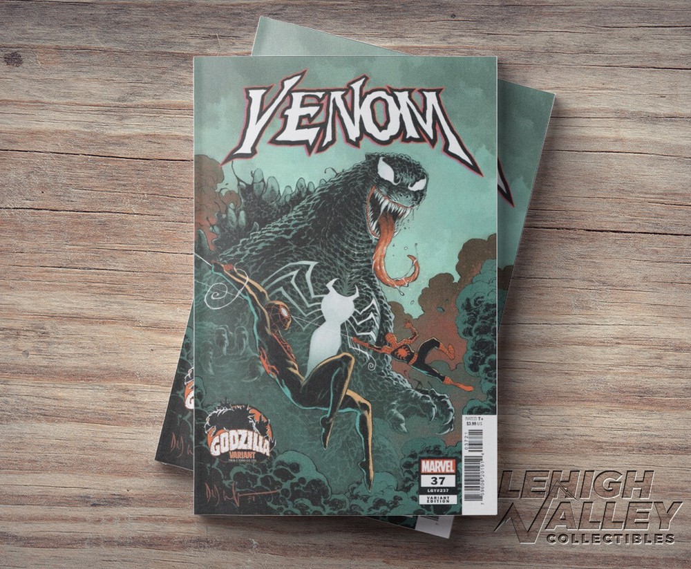 Venom #37 | Godzilla Variant | Dave Wachter THE BATTLE IS BACK IN TIME – AGAINST SPIDER-MAN! As Eddie and Dylan Brock’s father/son war rages, ANOTHER Dylan Brock is on a mission to make sure things go the way they’re supposed to. An older Dylan – Old Man Venom – travels back in time to Spider-Man’s earliest days – but should he fail, it’s not just the fates of the combatants of the Venom War at stake – but the fate of all of time itself! You will receive: 1x Venom #37 Godzilla Variant Delivery/Preorder: Please allow 2-5 days after order confirmation to receive tracking information. Best Offer: All Listings feature a Best Offer option, we love to haggle! Condition NM. Bagged and Boarded. Unread 9.4 and up. Image may be a stock image provided by the publisher if it is not an actual photo. Final art may vary. Shipping Shipped inside a Gemini/comic mailer. We strive to provide the best quality comics to our customers. Thanks for looking! Take a look at our other listings in case anything catches your eye and you want to bundle