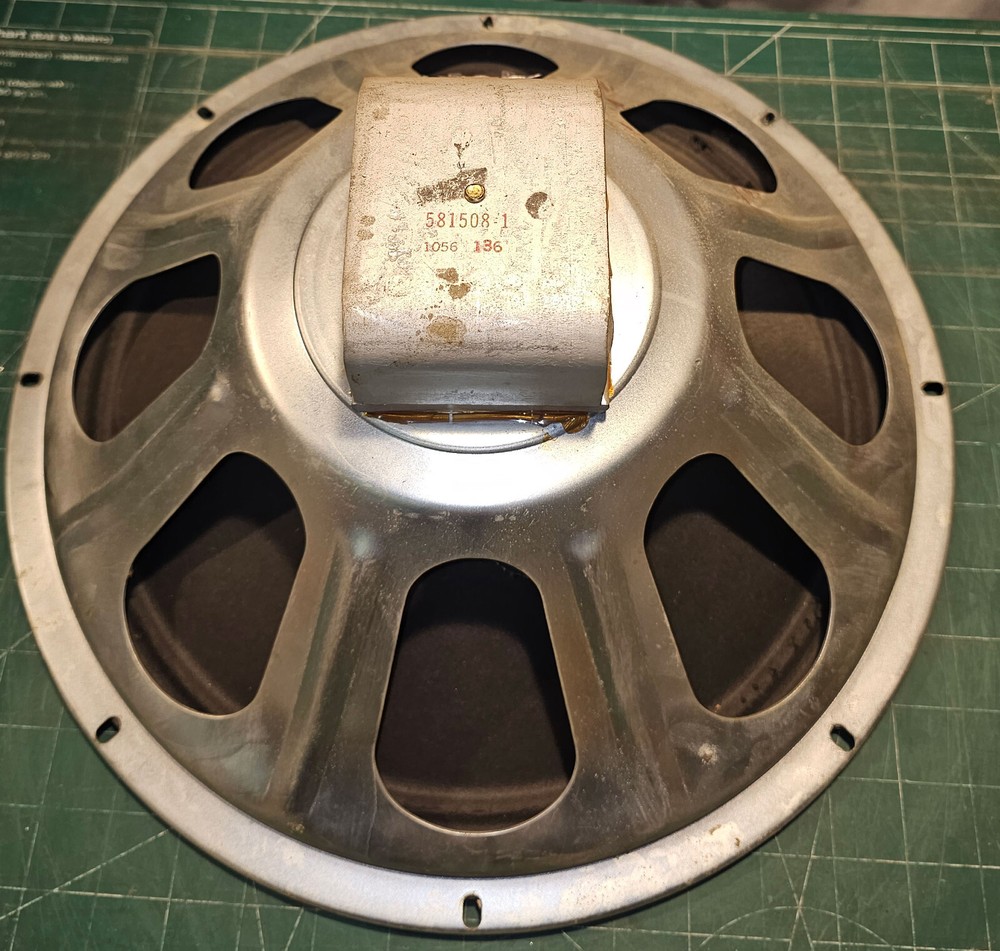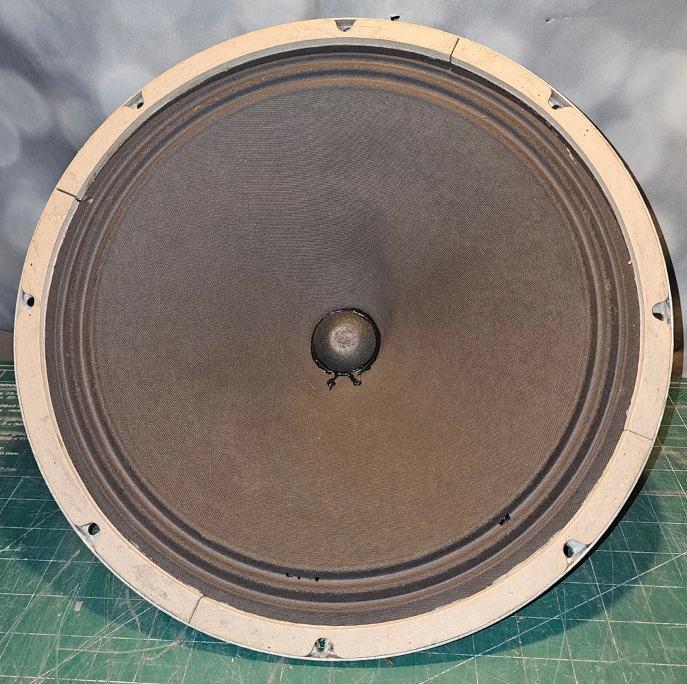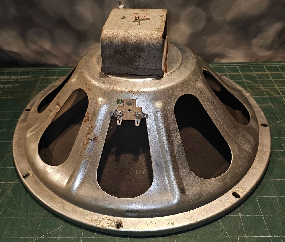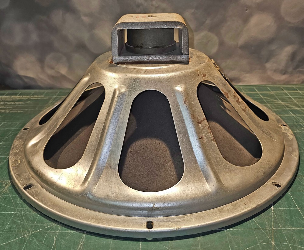 Description: Vintage 15" Fisher/Gefco Alnico Speaker - 581508-1, 1056 136 The speaker was tested and working well. It reads with a multimeter at 3.6 ohms. The basket has some stains and marks. The cone is in good condition except for a few very small/tiny holes near edge. Please see all photos. The speaker measures 15-1/8 x 6-1/2". Weight is 6 lbs 5 oz.