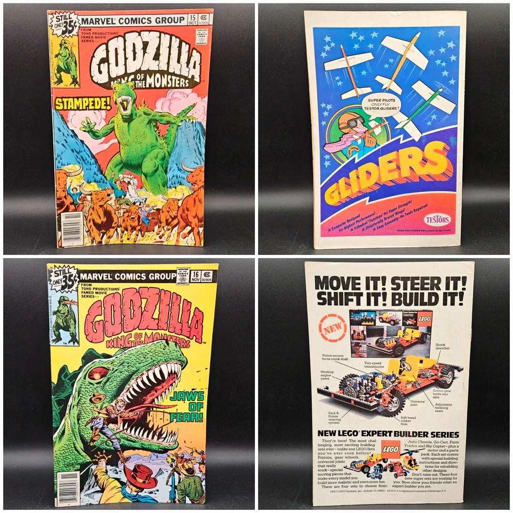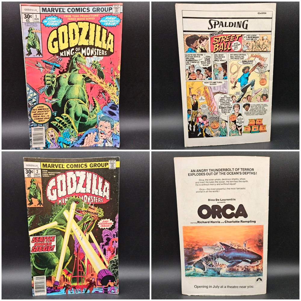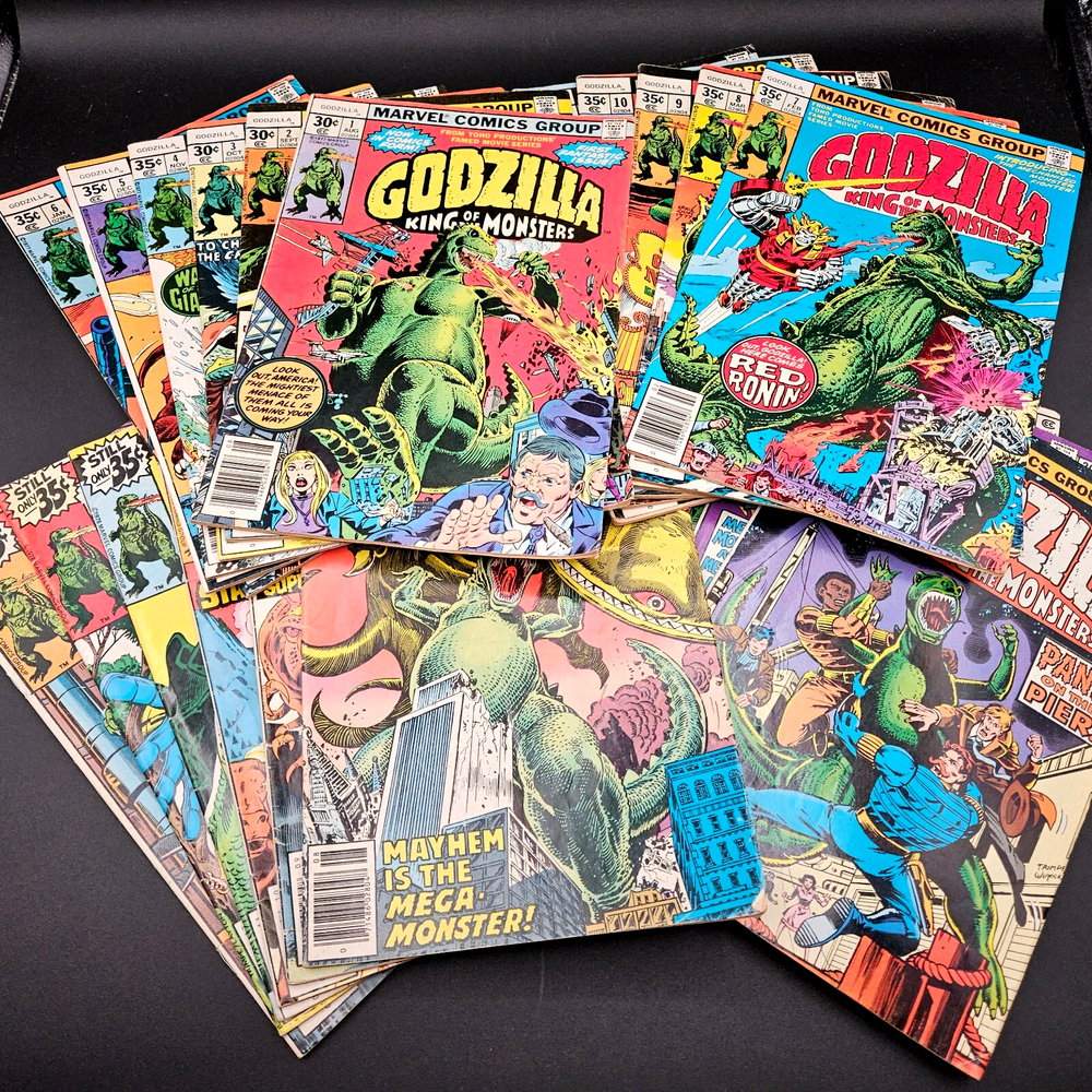 Vintage Marvel Godzilla King Of The Monsters Full Series Complete Set Run. Lot of 24 issues #s 1 - 24. Photos are of actual item buyer will receive, no stock photos. Comics will be bagged/boarded and shipped well protected. PLEASE NOTE: due to the cost of this item, a signature will be required at time of delivery. You do not need to be home. USPS will leave a note for you to go to the post office to sign and pickup. We have more vintage various genre comic books available now or coming soon in our eBay store. Why not check them out while you are here? Happy to combine shipping where possible. Please message us with any questions or requests. Comics have been well read and do show wear. Pages are yellowed. Indents, creases, bends and corner wear here and there-examples shown in photos. Not every.single.defect is shown in pictures, but only the most noticeable ones. Issue #11 has several bent pages. Non smoking, single owner, attic stored. Item is generally clean, but as this is a used item, should not be considered pristine and new owner may wish to do further nook and cranny cleaning/dusting. See pictures for more details. Vintage Marvel Godzilla King Of The Monsters Full Series Complete Set Run Lot of 24 issues #s 1 - 24. Photos are of actual item buyer will receive, no stock photos. Comics will be bagged/boarded and shipped well protected. PLEASE NOTE: due to the cost of this item, a signature will be required at time of delivery. You do not need to be home. USPS will leave a note for you to go to the post office to sign and pickup. We have more vintage various genre comic books available now or coming soon in our eBay store. Why not check them out while you are here? Happy to combine shipping where possible. Please message us with any questions or requests. Comics have been well read and do show wear. Pages are yellowed. Indents, creases, bends and corner wear here and there-examples shown in photos. Not every.single.defect is shown in pictures, but only the most noticeable ones. Issue #11 has several bent pages. Non smoking, single owner, attic stored. Item is generally clean, but as this is a used item, should not be considered pristine and new owner may wish to do further nook and cranny cleaning/dusting. See pictures for more details. Thank you for considering a purchase from Jacob Bumby's Barn. Please note the following: Feel free to contact us with any questions at all about our products. We are happy to help with your decision and will usually get back to you right away. We will gladly combine shipping should you order more than one item. Simply place items in cart and message us for an invoice by clicking the, "Request total" button located in the upper right of your cart while on a desktop computer. We will then send you an invoice for the total amount. This action does not reserve your items. You must pay the invoice ASAP to avoid losing your item(s) to another buyer. If you do not have access to a desktop computer, please message us for further instructions. Most of our items are used and therefore will most likely show some amount of wear and/or may be missing parts or pieces. We list in the description as well as photograph the condition of products to ensure that our customers know exactly what they are purchasing. All items are properly cleaned before posting. Vintage items with paper graphics or other delicate materials will only be lightly cleaned so as not to damage. Although we try to get the color as close as possible in our ad photographs, actual product colors may vary due to computer monitors and their settings.