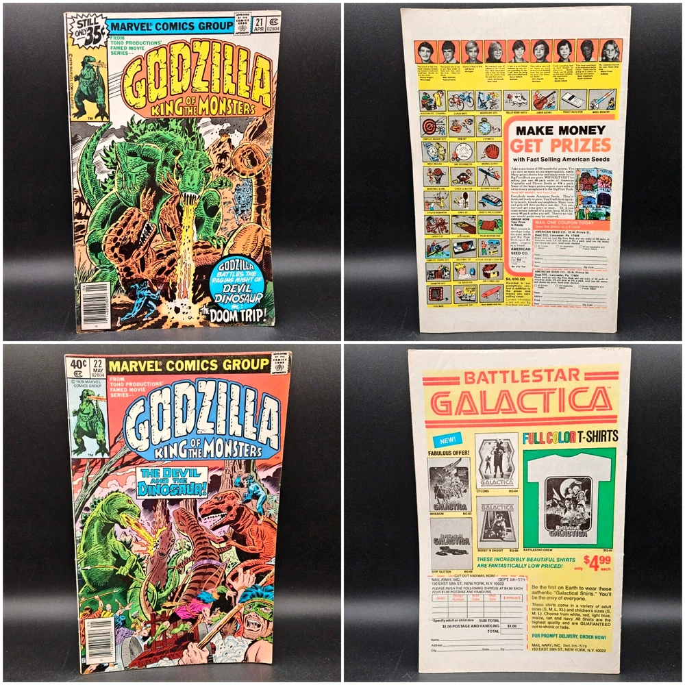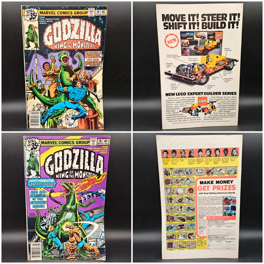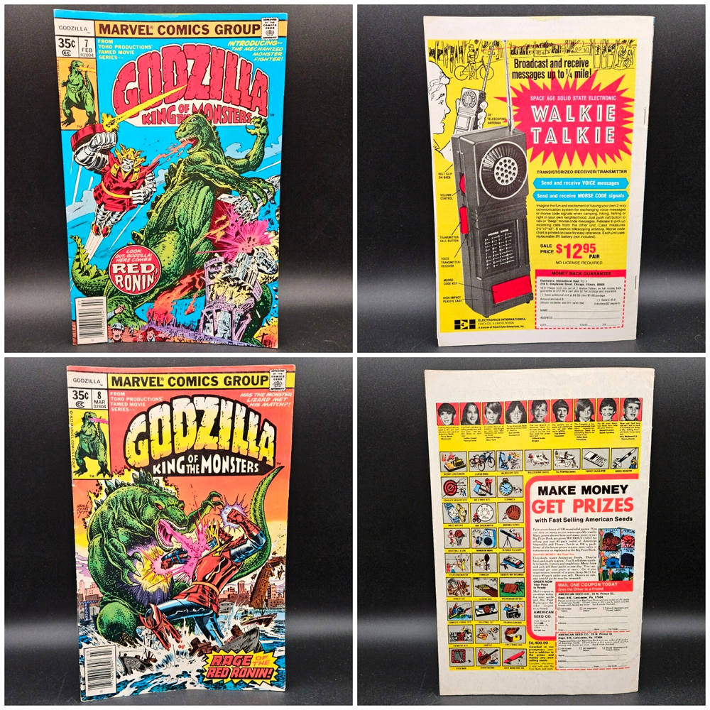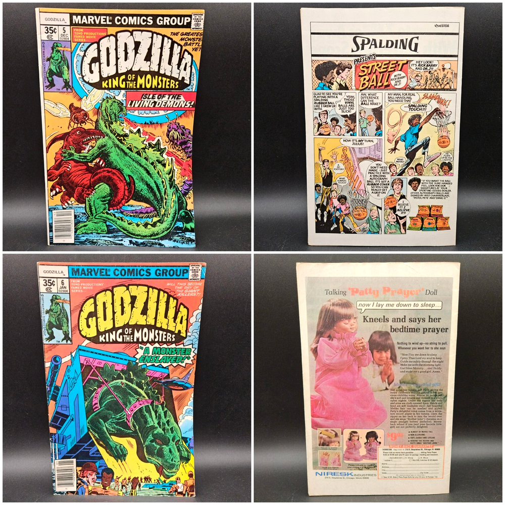 Vintage Marvel Godzilla King Of The Monsters Full Series Complete Set Run. Lot of 24 issues #s 1 - 24. Photos are of actual item buyer will receive, no stock photos. Comics will be bagged/boarded and shipped well protected. PLEASE NOTE: due to the cost of this item, a signature will be required at time of delivery. You do not need to be home. USPS will leave a note for you to go to the post office to sign and pickup. We have more vintage various genre comic books available now or coming soon in our eBay store. Why not check them out while you are here? Happy to combine shipping where possible. Please message us with any questions or requests. Comics have been well read and do show wear. Pages are yellowed. Indents, creases, bends and corner wear here and there-examples shown in photos. Not every.single.defect is shown in pictures, but only the most noticeable ones. Issue #11 has several bent pages. Non smoking, single owner, attic stored. Item is generally clean, but as this is a used item, should not be considered pristine and new owner may wish to do further nook and cranny cleaning/dusting. See pictures for more details. Vintage Marvel Godzilla King Of The Monsters Full Series Complete Set Run Lot of 24 issues #s 1 - 24. Photos are of actual item buyer will receive, no stock photos. Comics will be bagged/boarded and shipped well protected. PLEASE NOTE: due to the cost of this item, a signature will be required at time of delivery. You do not need to be home. USPS will leave a note for you to go to the post office to sign and pickup. We have more vintage various genre comic books available now or coming soon in our eBay store. Why not check them out while you are here? Happy to combine shipping where possible. Please message us with any questions or requests. Comics have been well read and do show wear. Pages are yellowed. Indents, creases, bends and corner wear here and there-examples shown in photos. Not every.single.defect is shown in pictures, but only the most noticeable ones. Issue #11 has several bent pages. Non smoking, single owner, attic stored. Item is generally clean, but as this is a used item, should not be considered pristine and new owner may wish to do further nook and cranny cleaning/dusting. See pictures for more details. Thank you for considering a purchase from Jacob Bumby's Barn. Please note the following: Feel free to contact us with any questions at all about our products. We are happy to help with your decision and will usually get back to you right away. We will gladly combine shipping should you order more than one item. Simply place items in cart and message us for an invoice by clicking the, "Request total" button located in the upper right of your cart while on a desktop computer. We will then send you an invoice for the total amount. This action does not reserve your items. You must pay the invoice ASAP to avoid losing your item(s) to another buyer. If you do not have access to a desktop computer, please message us for further instructions. Most of our items are used and therefore will most likely show some amount of wear and/or may be missing parts or pieces. We list in the description as well as photograph the condition of products to ensure that our customers know exactly what they are purchasing. All items are properly cleaned before posting. Vintage items with paper graphics or other delicate materials will only be lightly cleaned so as not to damage. Although we try to get the color as close as possible in our ad photographs, actual product colors may vary due to computer monitors and their settings.