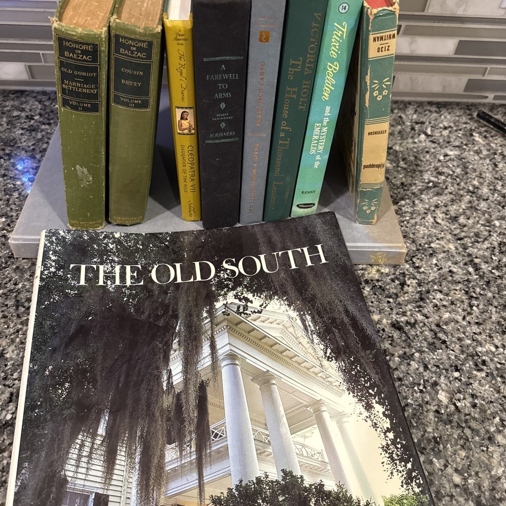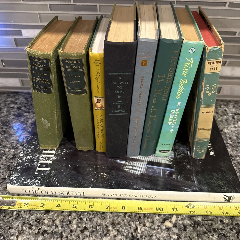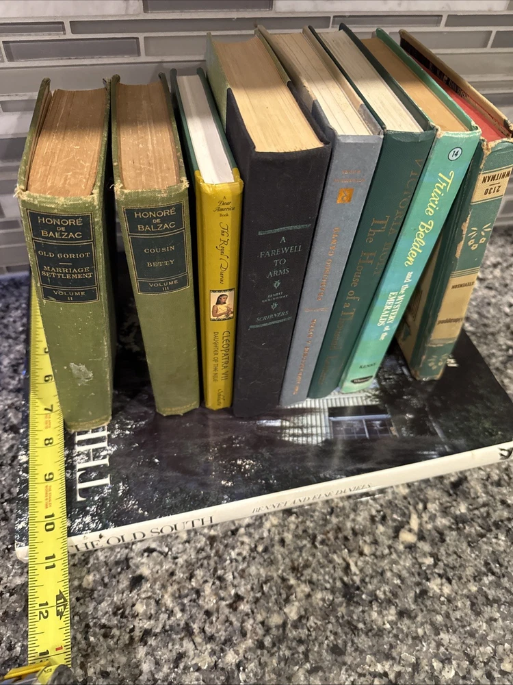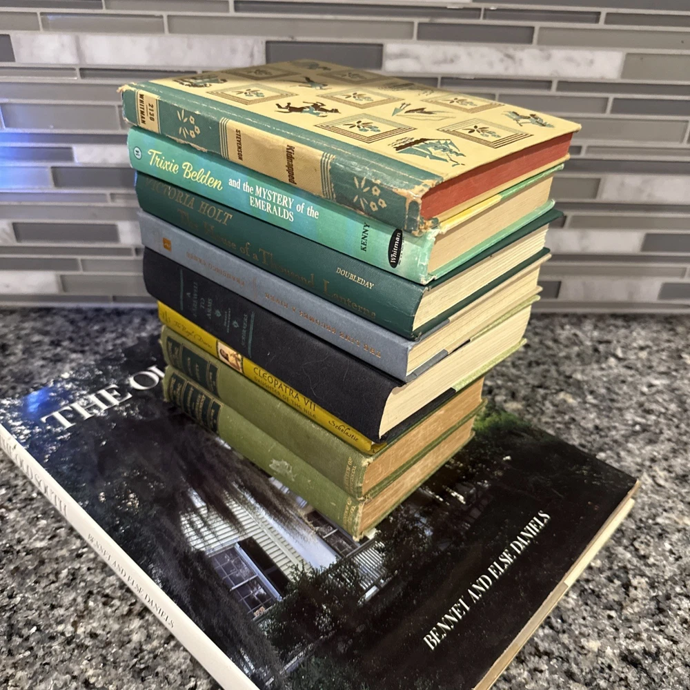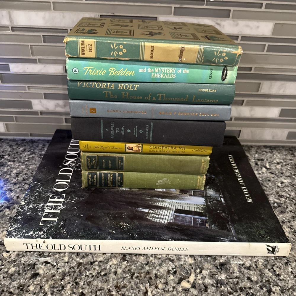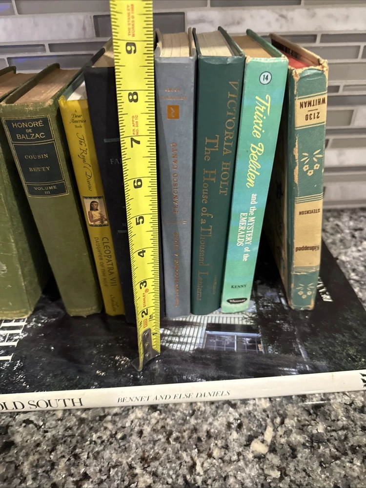 Decorative Vintage Book Set in Green and Blue Tones – XL Hardcover Bundle Bundle of 9 hardcover books in great vintage condition with minor wear. These are matched by height and color theme for a cohesive display—perfect for shelf styling, staging, or interior decor. One of the books is an XL-format coffee table book (“The Old South”), shown without its dust jacket to emphasize the aesthetic. The original dust jacket will be included with the shipment. Refer to pictures for exact titles and styling. You will receive exactly what is shown. 📚 Measurements: All books are approximately the same height, creating a uniform look. 🎯 Ideal for: shelf styling, coffee tables, office decor, photo shoots, or gifting. Ships via USPS Media Mail. 📦 Combined shipping discounts available. 🛒 Check out our eBay store for more curated decorative bundles and collectible book deals!