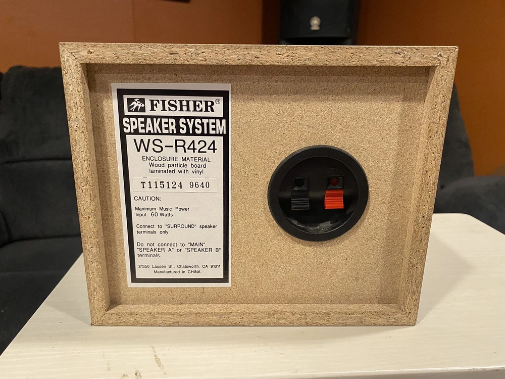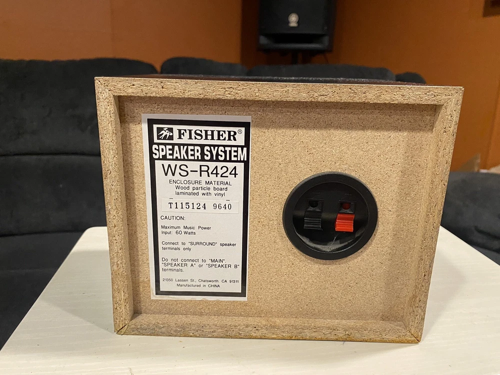 Vintage FISHER Surround Sound Speaker System 2x WS-R424 and 1x WS-C424. Condition is Used. Shipped with USPS Ground Advantage.
