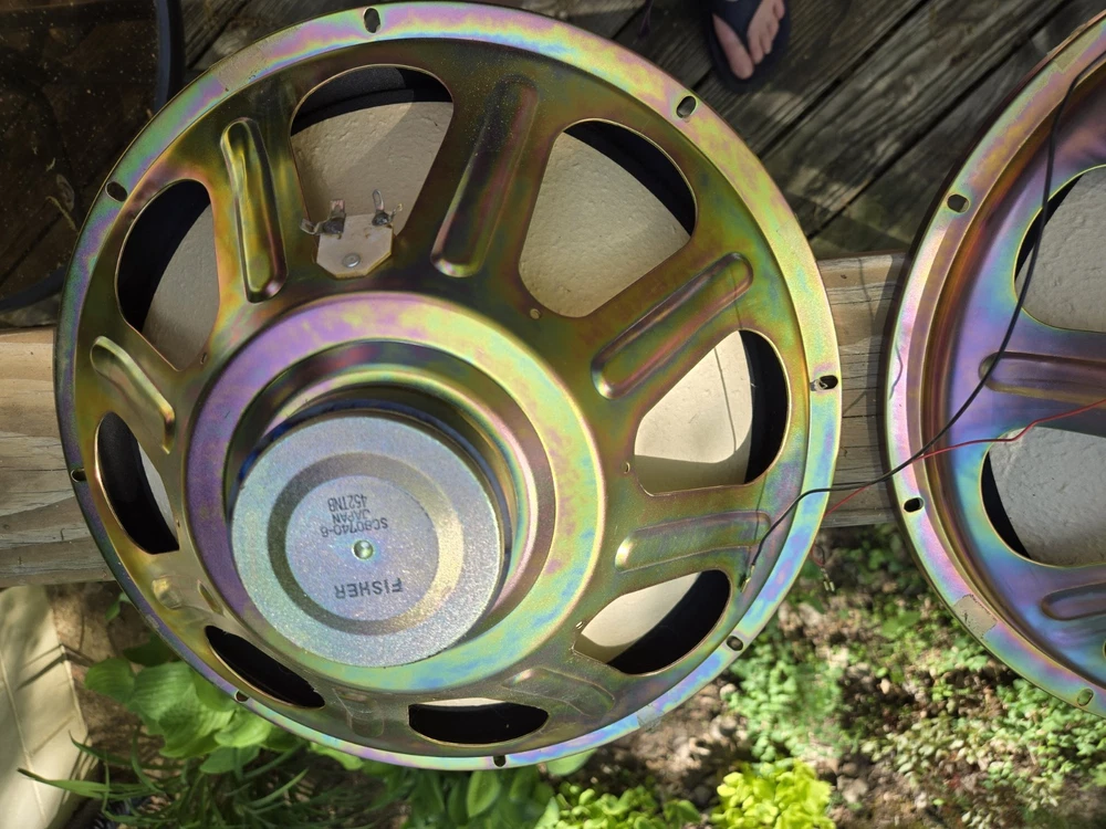 Elevate your audio experience with these Vintage Fisher 12" Speakers, model Fisher STV-828. These speakers boast a rich and authentic sound that is sure to please audiophiles and vintage audio enthusiasts alike. The robust build and classic design reflect Fisher's commitment to quality and timeless style.Whether it's for a home stereo system or to add a touch of retro flair to your audio setup, these speakers offer a gateway to the warmth of vintage audio. With their original Fisher craftsmanship, they are a testament to the era when speakers were built to last and deliver exceptional sound without compromise. Tested as shown in pictures. Recently removed from cases, no rips or tears notable. There is an extra small speaker I'll throw in that was in the original set. Only one worked.