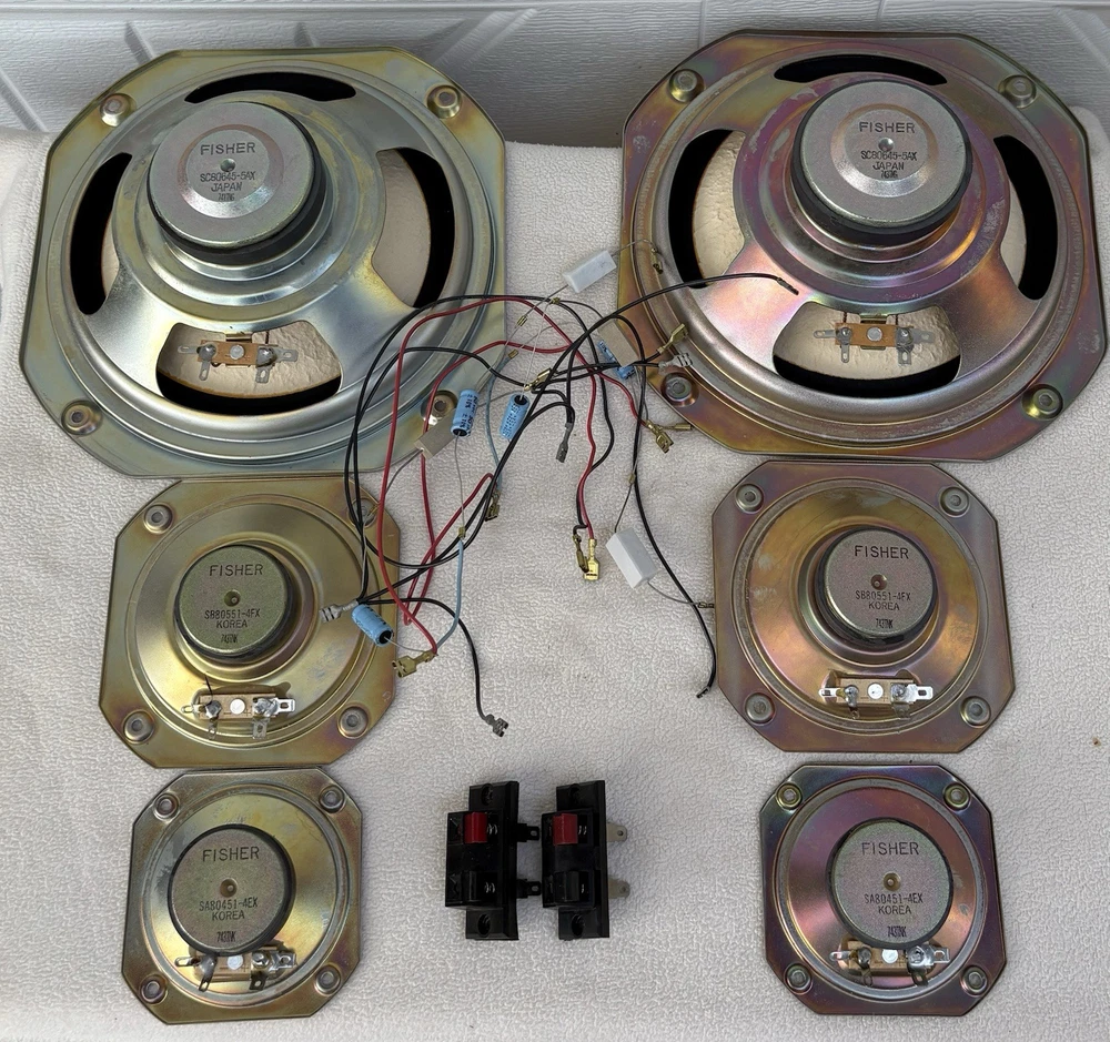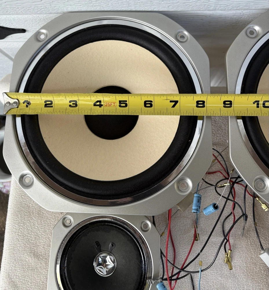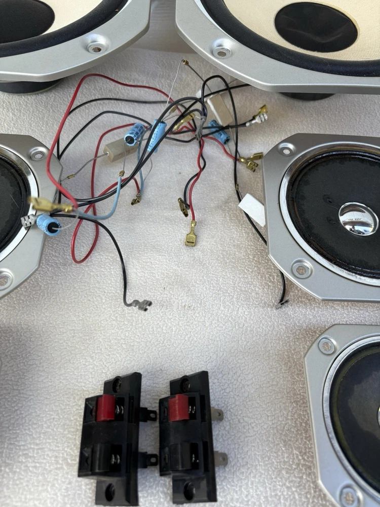 You get everything pictured. Just Removed from boxes. Great condition for age. See pics 2 subs 2 Mids 2 Tweeters Wires and back connection plugs.