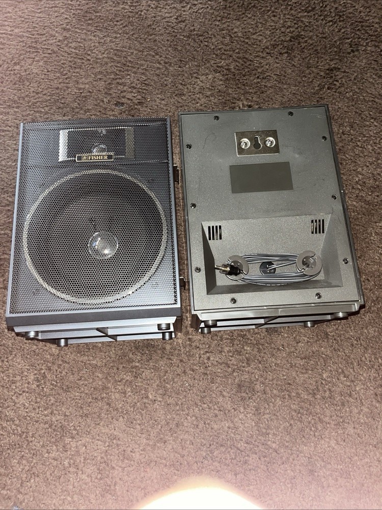These vintage Fisher speakers sound amazing! Found untouched in my grandma's office—just plugged them in, and the audio is crisp and warm. Even without the original boombox, they deliver rich, full sound, perfect for retro setups. Such a cool find!
