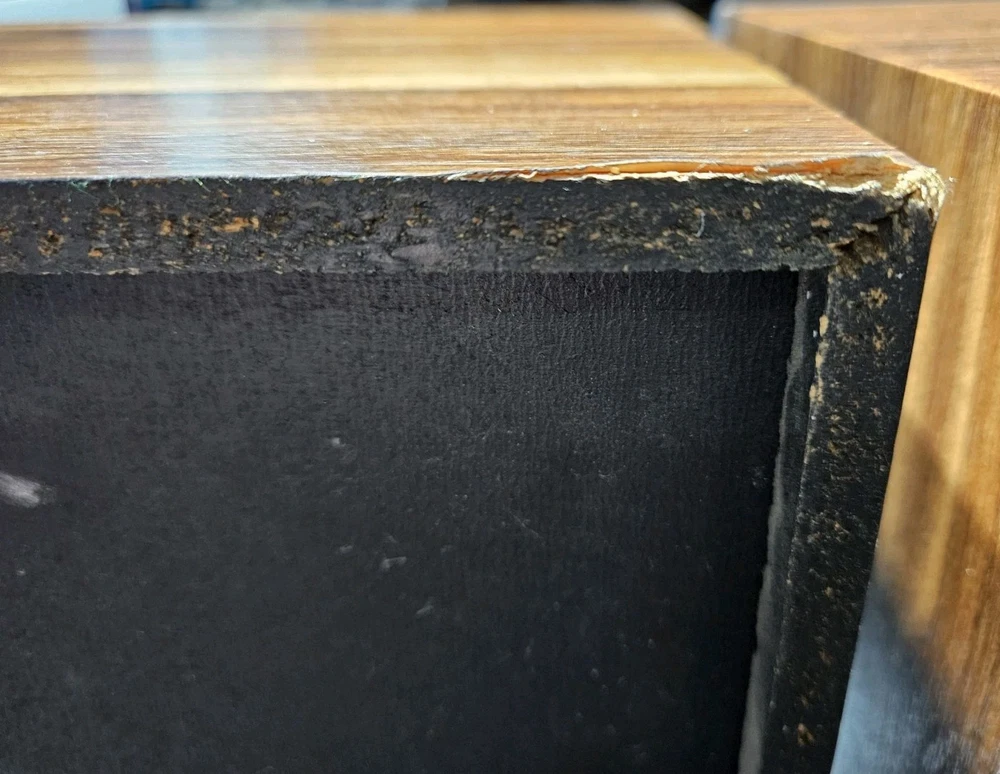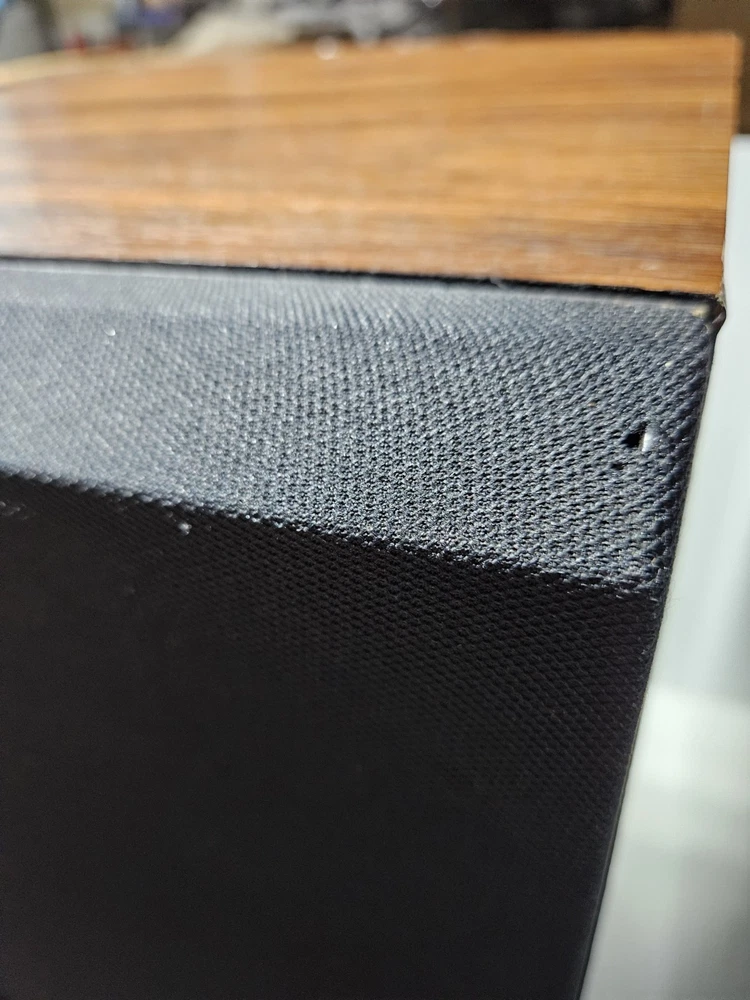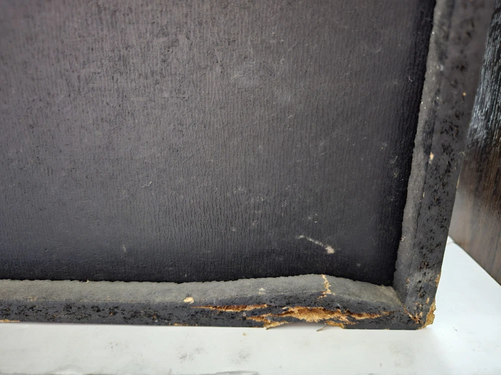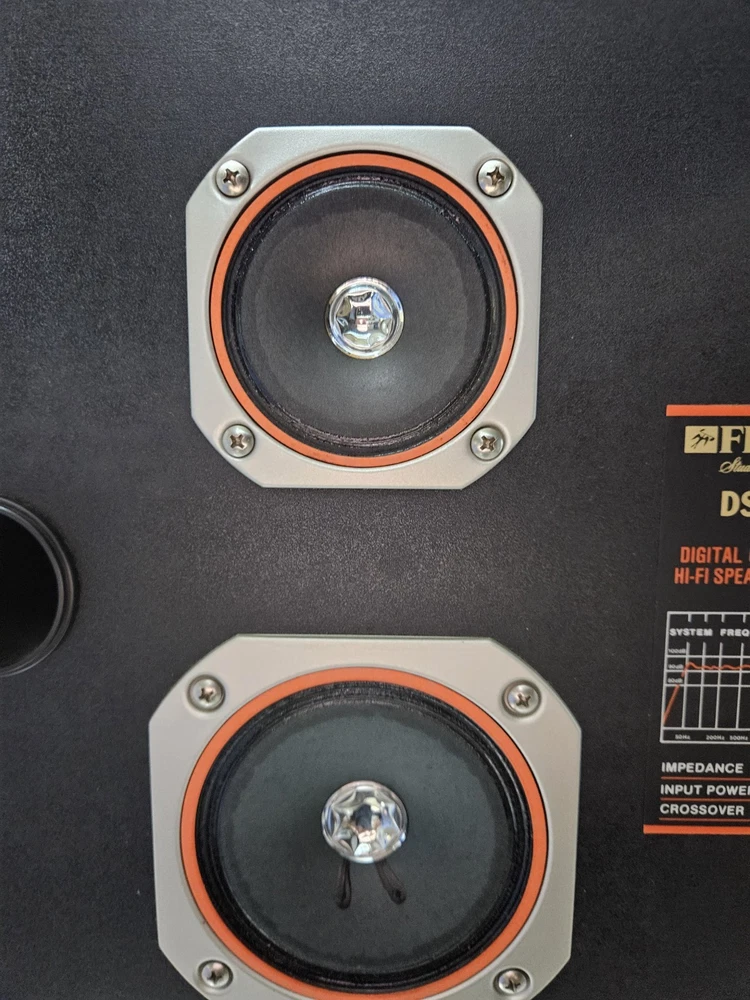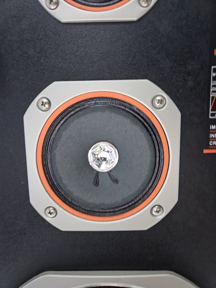 There is some damage to the wood and to the black mesh covers. I tried to show all in pictures. The one the middle of the speakers are pressed in. Tested and sound great. Tested with rock and rap music. Boxed up and ready to ship. Or local pickup.