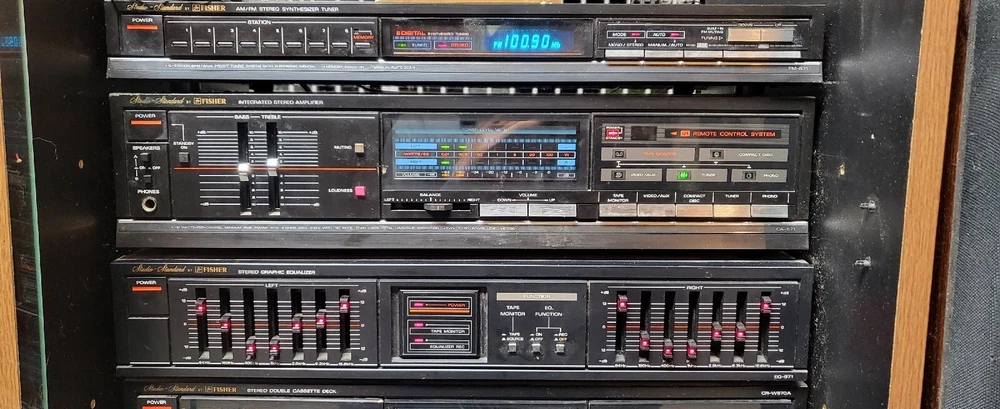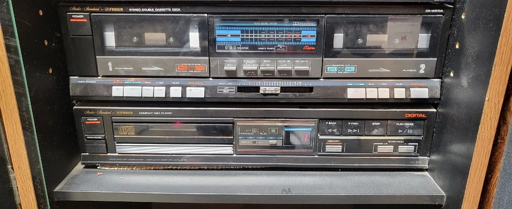 Vintage Fisher Stereo System W/2 SPEAKERS / AD-870, CR-W870A, EQ871, CA-871. Cassette player does not turn on. Everything else works. I am most likely willing to drive to you.