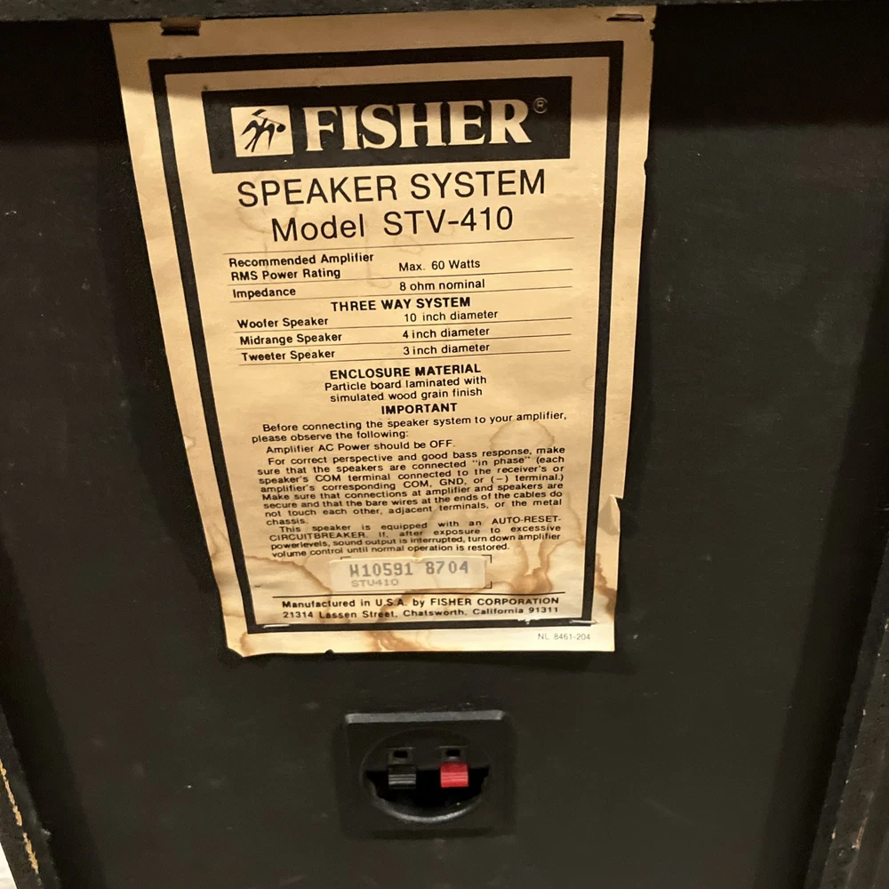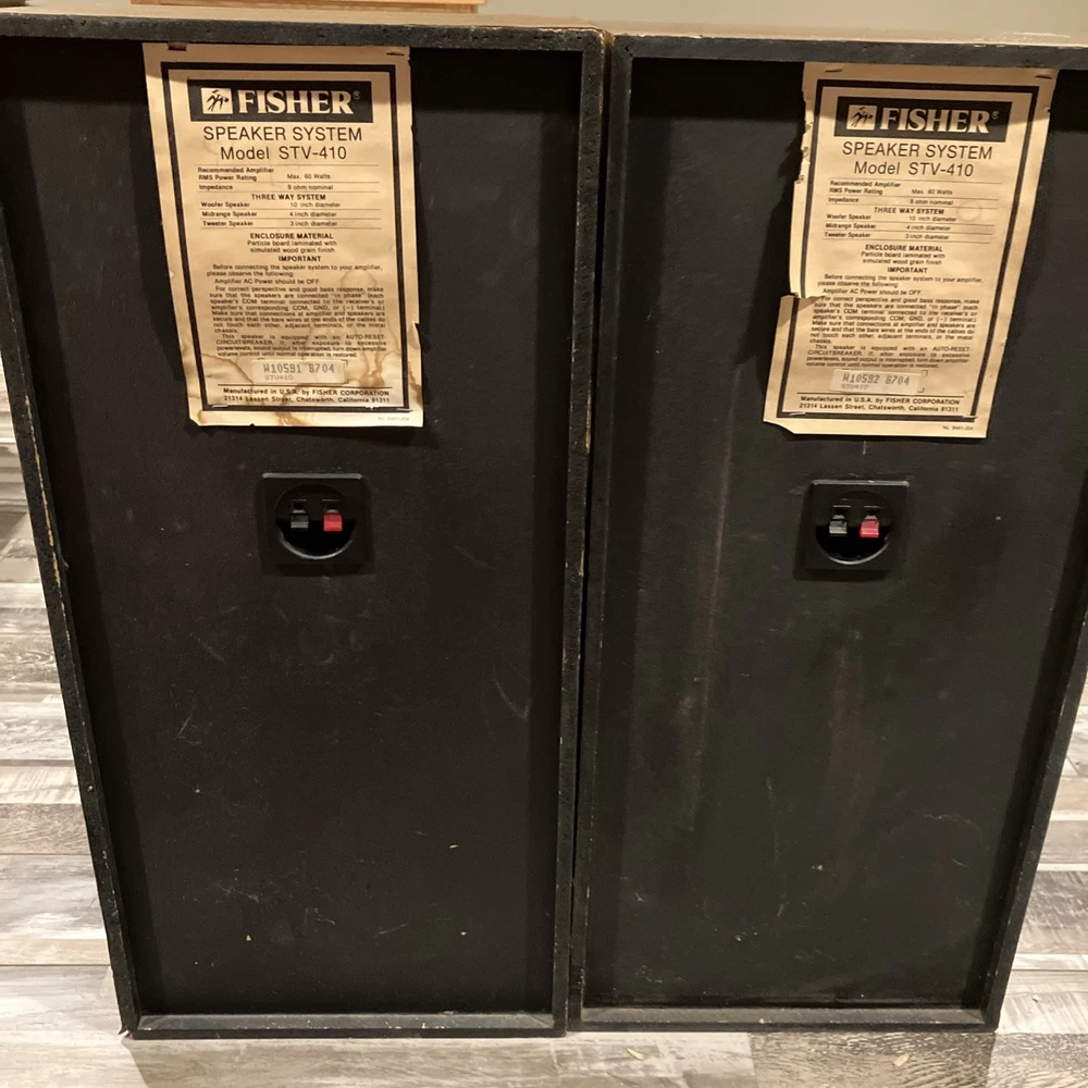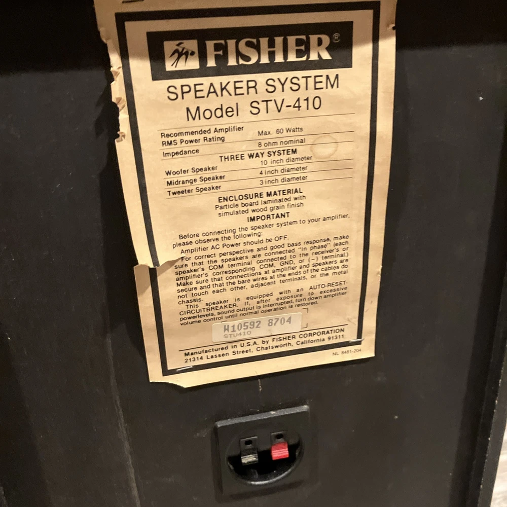 Watch video to hear sound quality of speakers one speaker is missing Fisher nameplate on front screen. Each speaker will be shipped individually with both tracking numbers provided. Will refund shipping overages. I will select the most economical shipping (which may not be one of the two options I have listed in this listing).