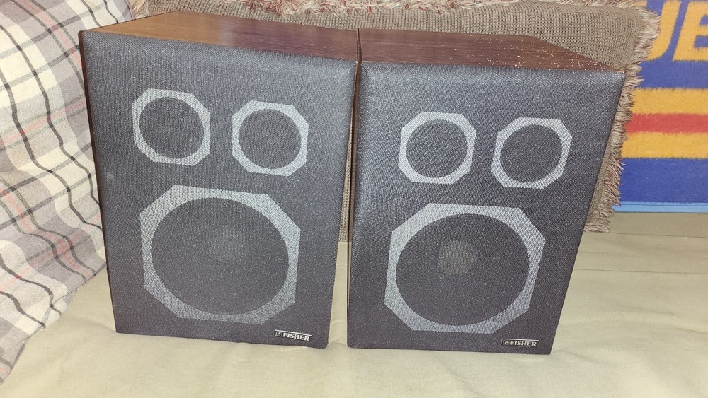 Vintage Fisher Wooden Speakers PAIR. Not sure of the model. Cleaned and tested. Works good. One has white paint speckles on the top but both are in great shape. US buyers only please. Free shipping. Any questions please email me before purchasing. Thanks for looking. Check out my other listings for other video games and randomness.