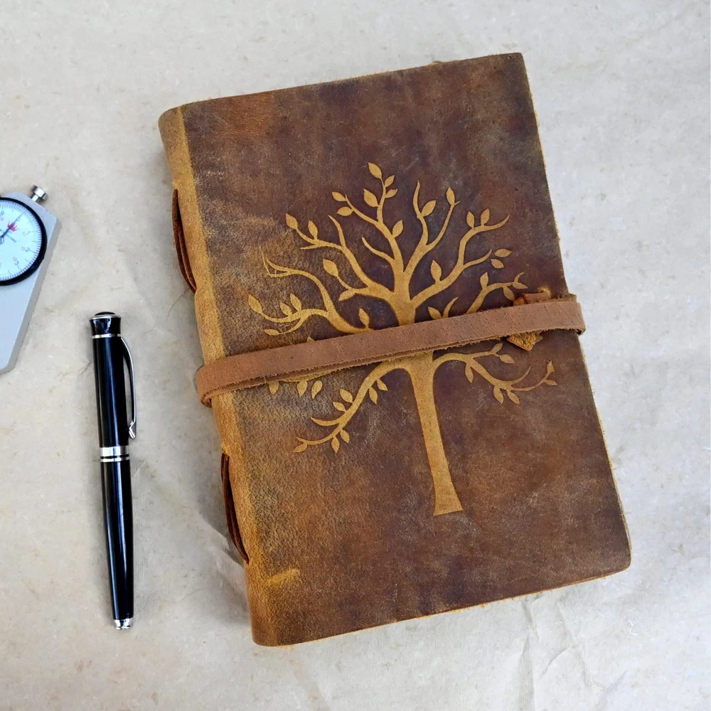 UNIQUELY RUSTIC HANDCRAFTED: Our unique unruled leather journal is made with 100% pure buffalo leather that will stand the test of time. The leather is meant to age, developing an even better feel and color. A proprietary oil tanning process is used to give the cover its vintage feel. Since we believe in using only natural genuine leather, our products are truly unique and are destined for compliments. TRULY VERSATILE: The journal is the perfect size for all your drawing, writing, sketching, note taking, traveling and much more. Our customers have been known to use it for Nature journaling, Instagram photo book or scrapbook, Teen journal, Life moments tracker, Vacation scrapbook, Story writing, Hunting Logbook, Poetry Work, Bible Journaling. USE ANY KIND OF PEN; sketch, doodle on your blank Journal with a Calligraphy Pen, Fountain Pen, Brush Pen and many more. ECO-FRIENDLY BY NATURE: When we were designing this journal, we were seriously concerned about its environmental effects. So, we decided to use only 200 pages/100 sheets of handmade non-refillable deckle edge paper that is thick enough to withstand any type of pen. Our paper is acid free and no trees were harmed in its making. OLD SCHOOL VINTAGE FEEL: Let this journal take you back in time to when things were just so simple. Let your art flow under the shadow of our rustic cover or inscribe poetry on our smooth creamy pages. The leather strap will keep your diary tightly closed when not in use or could be used as a fancy bookmark. The notebook makes a perfect gift or present for anniversary, graduation, Birthday and will surely excite anyone. THE PROMISE: Try our handmade rustic leather journal for 365 days risk free. If you don't love it, we'll accept a return no questions asked. We are a US based small-business unlike others and are always here to help. Feel free to reach out to us anytime! For every journal we sell, we allocate a percentage of our profit towards donating fresh meals and educational materials to families and children in need. PICK ONE UP TODAY!