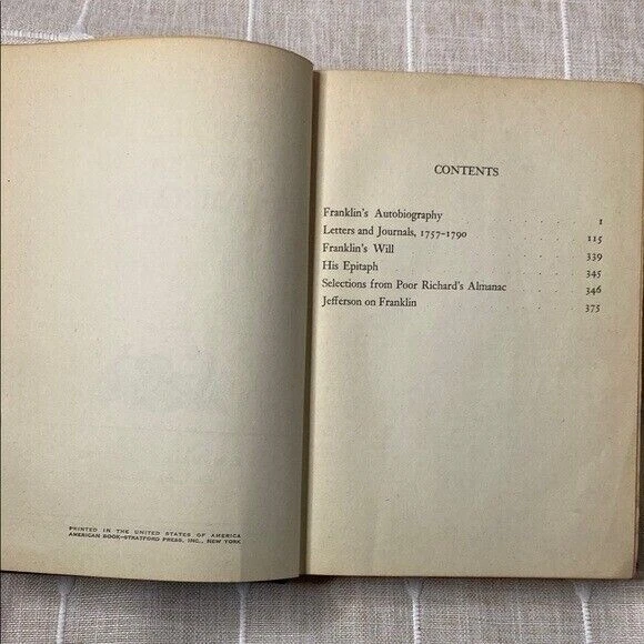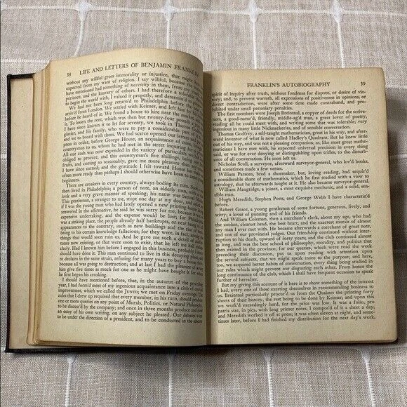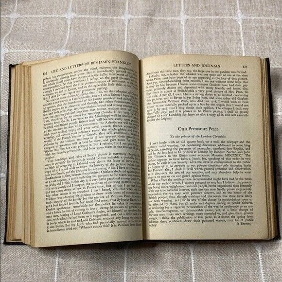 Delve into the past with this captivating edition of "Life and Letters of Benjamin Franklin." This vintage book offers a glimpse into the life and mind of one of America's founding fathers. The book features a dark cover with an embossed design and a beautifully decorated spine with silver accents. This book is perfect for history buffs, collectors of classic literature, or anyone seeking inspiration from the life of a remarkable individual. Display it proudly on your bookshelf, use it as a conversation starter in your study, or gift it to a fellow history enthusiast. **Please note there is staining on the back leather cover which I have shown in the 3rd picture.** Keywords: Benjamin Franklin, Life and Letters, Biography, Vintage Book, Antique Book, Collectible Book, Founding Father, American History, Historical Literature, Rare Book, First Edition, Literary Classic