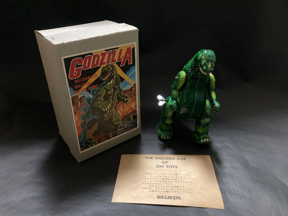 Thanks for looking my item Description Rare Vintage1990s Godzilla Green Wind Up Tin Toy Billiken Shokai Made in Japan Free Shipping Close to new, just checked the working condition Condition : Mint (Tested working condition) Material : Tin Released Year : 1990s Brand : Billiken Shokai Country of Origin : Japan ※ Box might have damages on the surface because of the long storage ※ Please check all the pictures before your purchase Shipping Method and Shipping Cost and Estimated Delivery Time I ship this item by fast air with a full tracking number It takes about 3 to 5 days United States, about 5 days to Europe and South America (For example) I ship this item to most of the countries ※ I can't ship this item only to some countries in South America and Africa so please ask me before bidding ※ It might takes more time than usual when Christmas and the end of the year are drawing near so please understand if there is little delay for shipping . I can also use fastest shipping such as EMS if you need the item as soon as possible and can pay extra cost so please ask me in that case. International Sellers - Please Note Import duties, taxes and charges are not included in the item price or shipping charges. These charges are the buyer's responsibility. Please check with your country's customs office to determine what these additional costs will be prior to bidding/buying. I will not under-value merchandise or mark the item as a gift on customs form as that is against U.S and International laws. About Me I pack, ship only 100% authentic items carefully, safely and quickly as soon as possible after your payment. I can also be of your help if you want Japanese items other than on my listings. Feel free to ask me anything if you have questions.