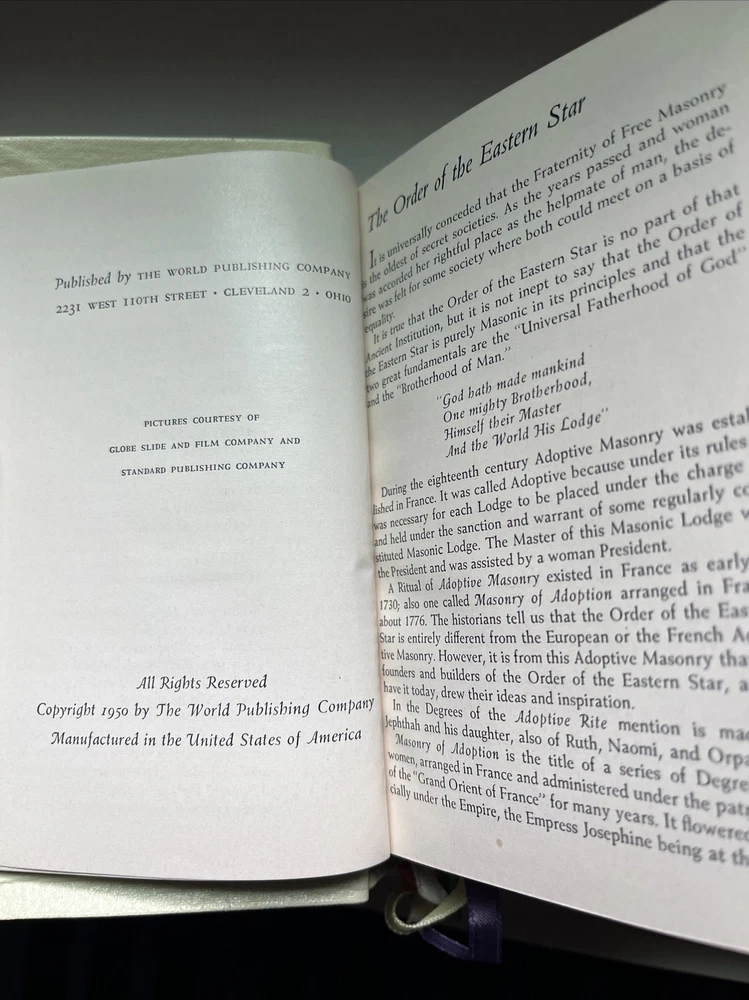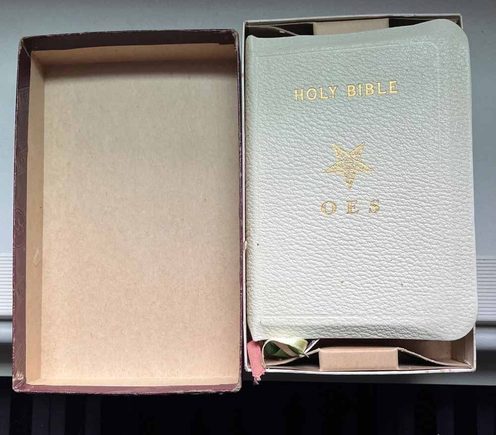 Please see pictures for the exact Bible that is being offered. Order of the Eastern Star Masonic KJV Bible published 1950. Box included. Very good condition considering age. The only writing noted was on presentation page and intro/title page. Free shipping to U.S. residents.