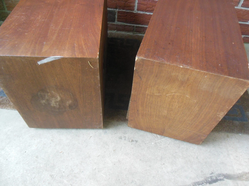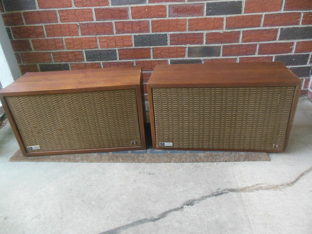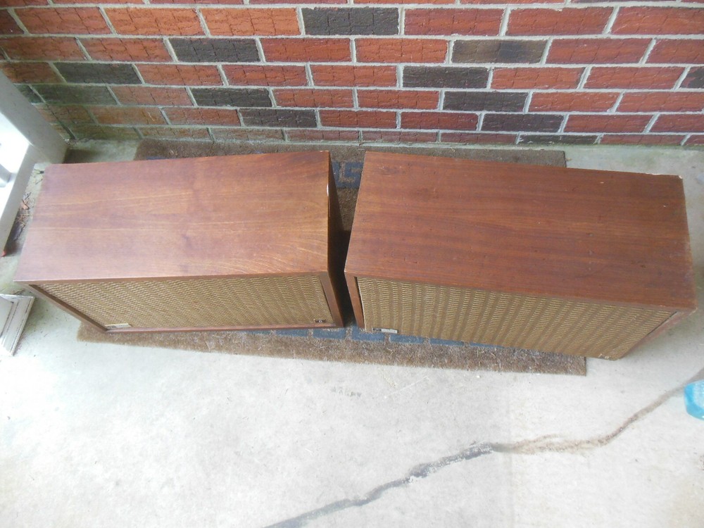 In pretty rough shape, both cabinets have a lot of wear and tear, some chipped & missing veneer, please see pictures, will need quite a bit of restoration. Neither is working properly, volume on one is low and it sounds like the mid on the other is not working, may have more issues, will need work, selling "as is" for parts or repair. It does appear that these are possibly all original. Grills are in nice shape with both badges on each This item is available for local pickup in Newark, DE 19711. I will be happy to deliver myself within 75 miles of my location for a rate of .40/mile round trip to cover gas and my time. Tolls will be in addition to this amount and I will let you know before delivery the total delivery fee -payable by Paypal or cash upon receipt. I will consider delivery beyond 75 miles on a case by case basis, send me a message! Please contact me before bidding or buying if you do not plan on picking this up to confirm delivery is possible to your location. Am willing to work with the shipper of your choice as long as you make all arrangements for them to pick up and pack the item at my location or nearby, I cannot provide any packaging/padding, etc. for the item. PLEASE NOTE THAT I'M LOCATED IN DELAWARE, A SALES TAX- FREE STATE, IF YOU PICK THIS UP HERE AND PAY BY CASH ONLY I'M NOT REQUIRED TO COLLECT ANY SALES TAX