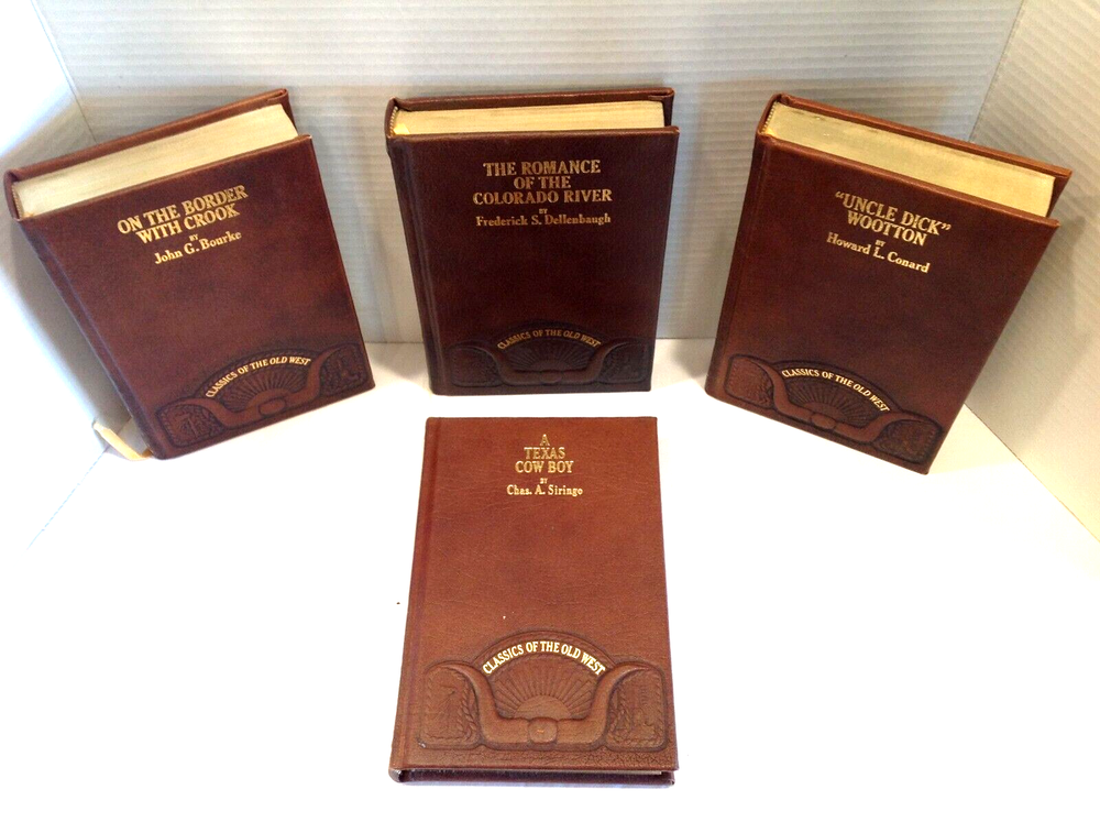 Vintage Time Life Classics of the Old West Leatherbound Books Lot of 4 Explore the rich tapestry of Western Americana with this exquisite collection of 4 leatherbound books. Each volume in this Vintage Classics of the Old West series promises to be a treasure for both avid readers and collectors alike, offering a nostalgic journey through the rugged landscapes and captivating stories that shape the American West. Your will get 4 leatherbound books. Here are the titles of each book: Uncle Dick Wootton by Howard L. Conard On the Border with Crook by Bourke A Texas Cowboy by Siringo The Romance of the Colorado River by Dellenbaugh Inventory: Z-1 Fiction