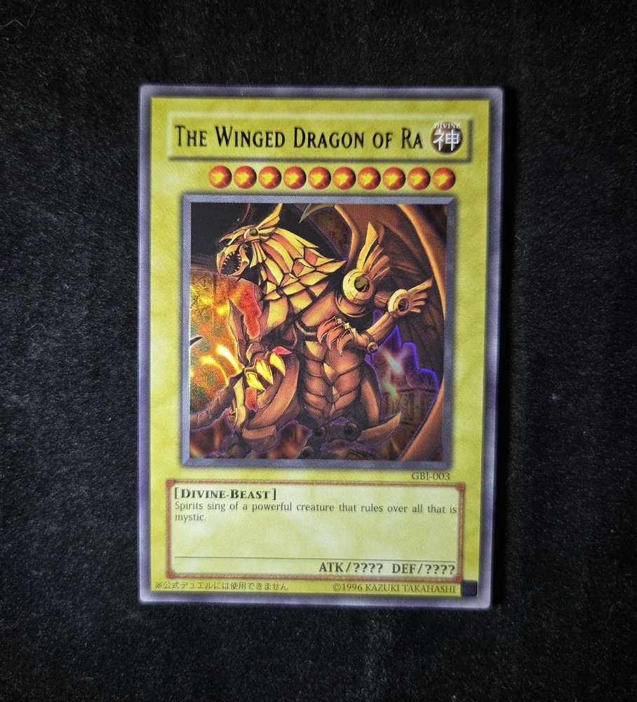 The Vintage Yu-Gi-Oh Winged Dragon of Ra - GBI-001 is a highly sought-after collectible card from. With its unique features and rarity, this card combines both aesthetic appeal and gameplay value for fans of the Yu-Gi-Oh series. CS 0.57.2b