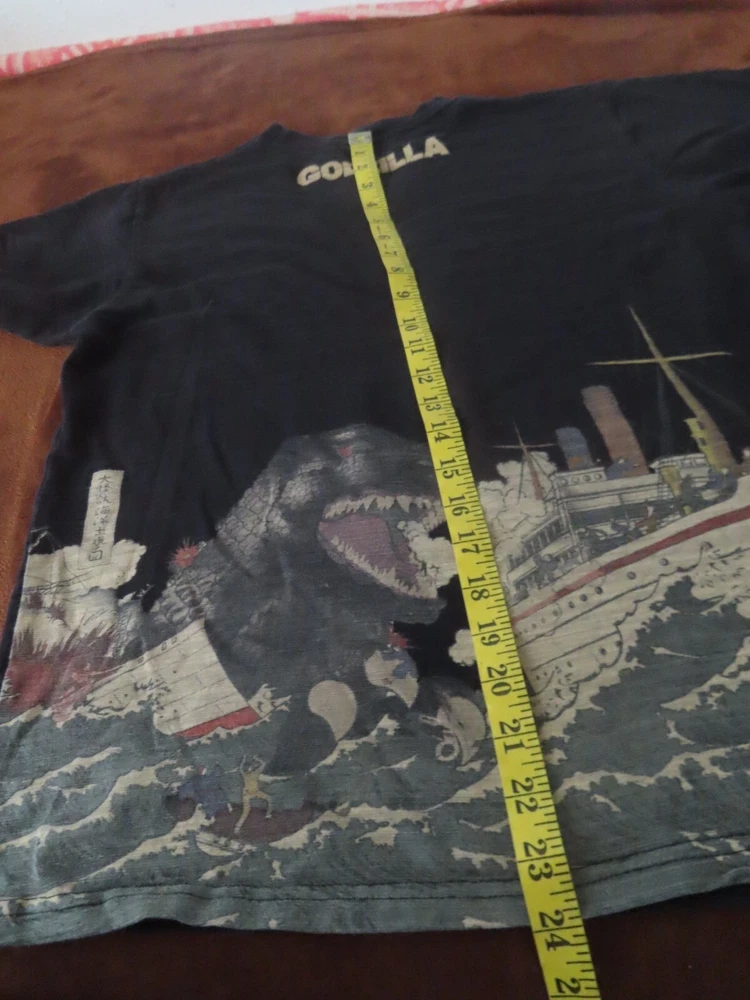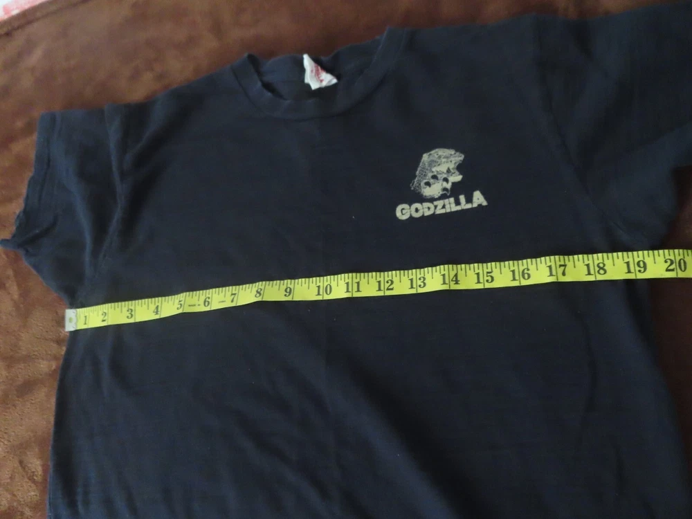 great shape Vintage toho Godzilla tshirt M pit to pit 19.5 shoulder to shoulder 16.5 top to bottom 24 sleeve 7 In an effort to reduce returns: Please read the entire description & use provided measurements (DON'T RELY ON SIZE TAGS)! Please compare measurements to something you currently wear to help avoid returns or item not fitting!!! **All measurements are taken with garment laying flat and relaxed .** Remember: Pre-owned clothing sizes often vary by manufacturer & previous washings!!! **My store items come from: thrift stores, garage sales, etc. (don't really know their history) **We try to adequately describe each item (photographs) & disclose flaws/blemishes. **If you encounter a problem with your item, please contact me!! **C olors may slightly differ due to monitor settings. **We do minimal cleaning ~ we suggest & prefer you follow manufacturer recommendations or your preferred method. If you have any questions or would like to see additional photos, please contact us. We will try to respond to your question or request promptly. *Feedback Policy: Feedback will be left upon receipt of buyer's feedback. *Payment: Please provide payment within 4 days of purchase
