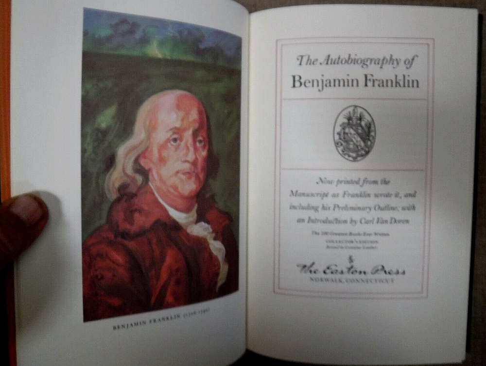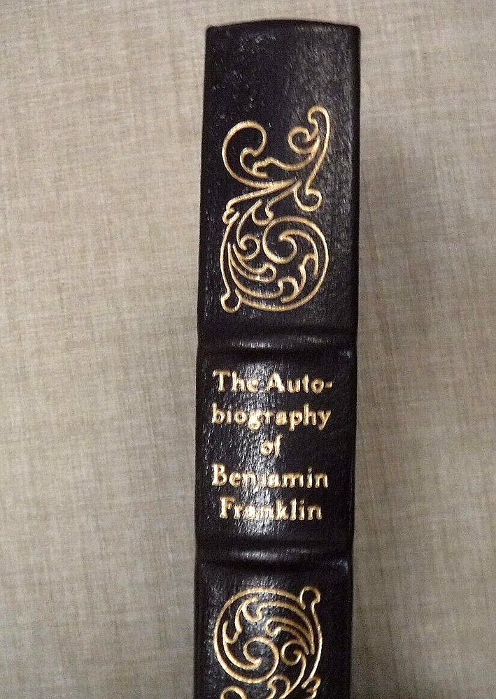 Up for sale is a vintage 1976 edition of "The Autobiography of Benjamin Franklin" published by Easton Press. This is a luxurious collector's edition that features beautiful illustrations and is bound in genuine leather. The book tells the story of Benjamin Franklin's life and is a must-have for any lover of biographies and history. The language used in the book is English and the publisher is Easton Press.