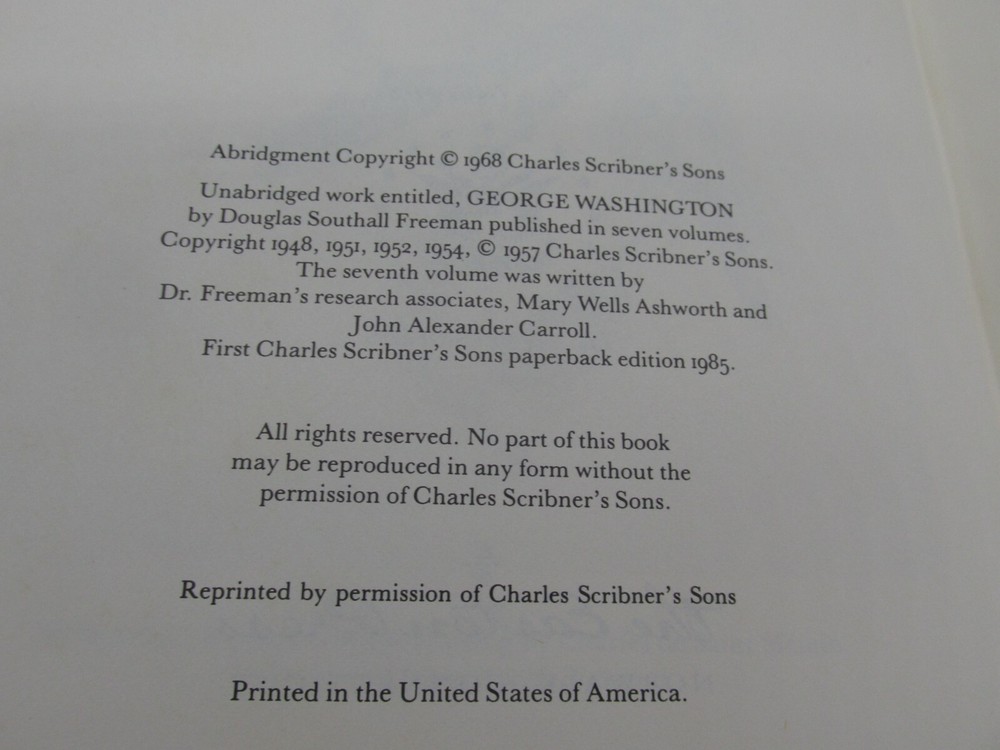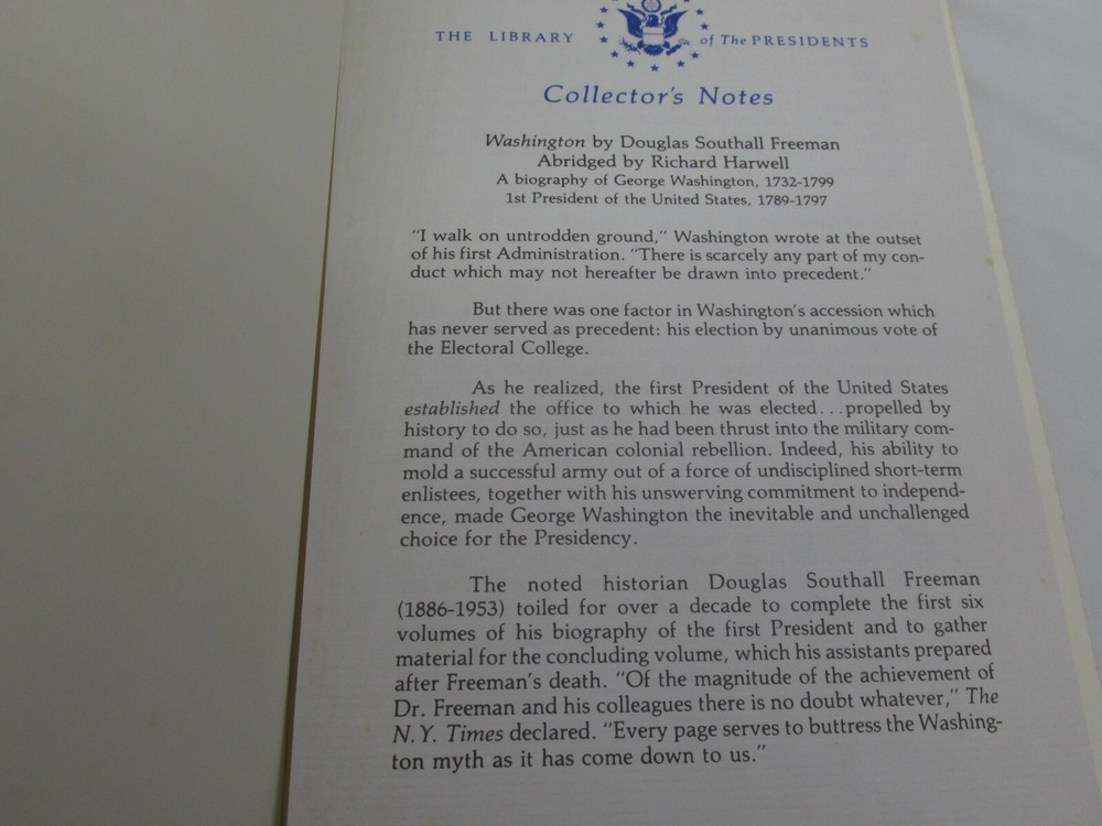 Up for sale is a WASHINGTON by Douglas Southall Freeman, Richard Harwell Easton Press Leather HC. Overall the book is in LIKE NEW Condition. Boards are clean and free of marks, binding is tight without tears. A fine specimen for your library. Please look closely at all the pictures so you can see exactly what you are purchasing. If you have any questions at all please don't hesitate to email me. Thank you for your support.