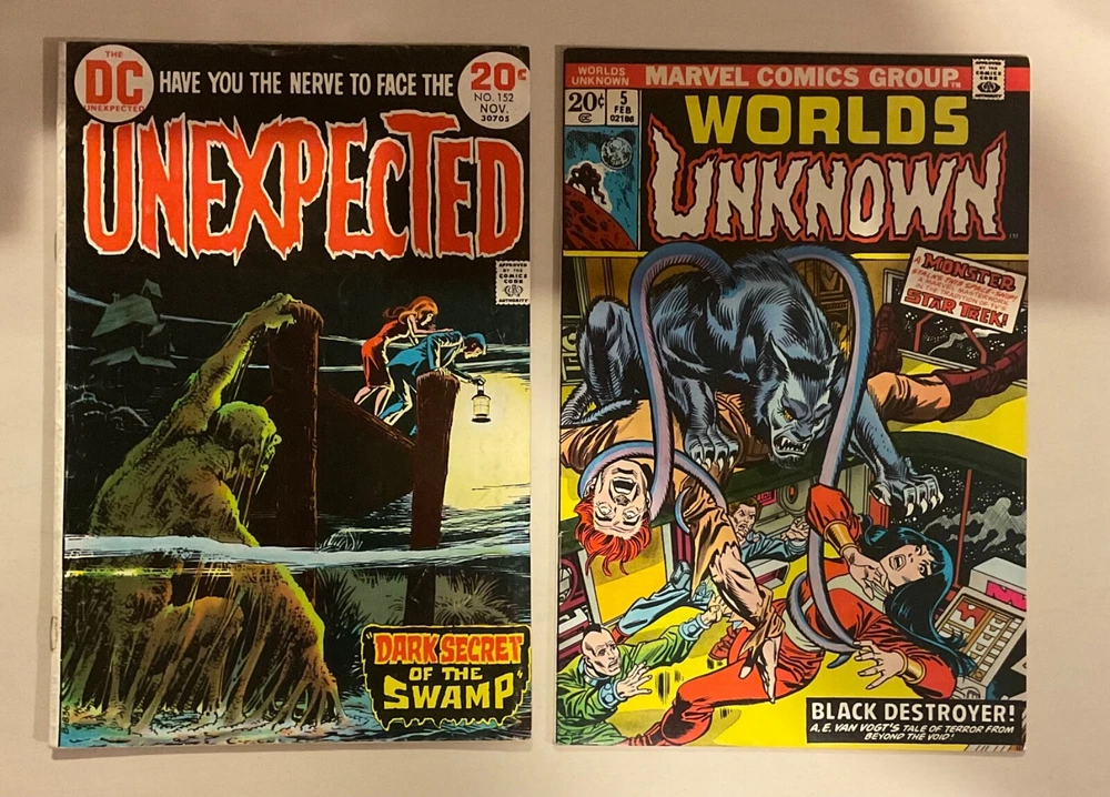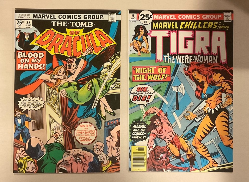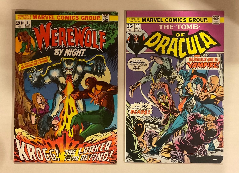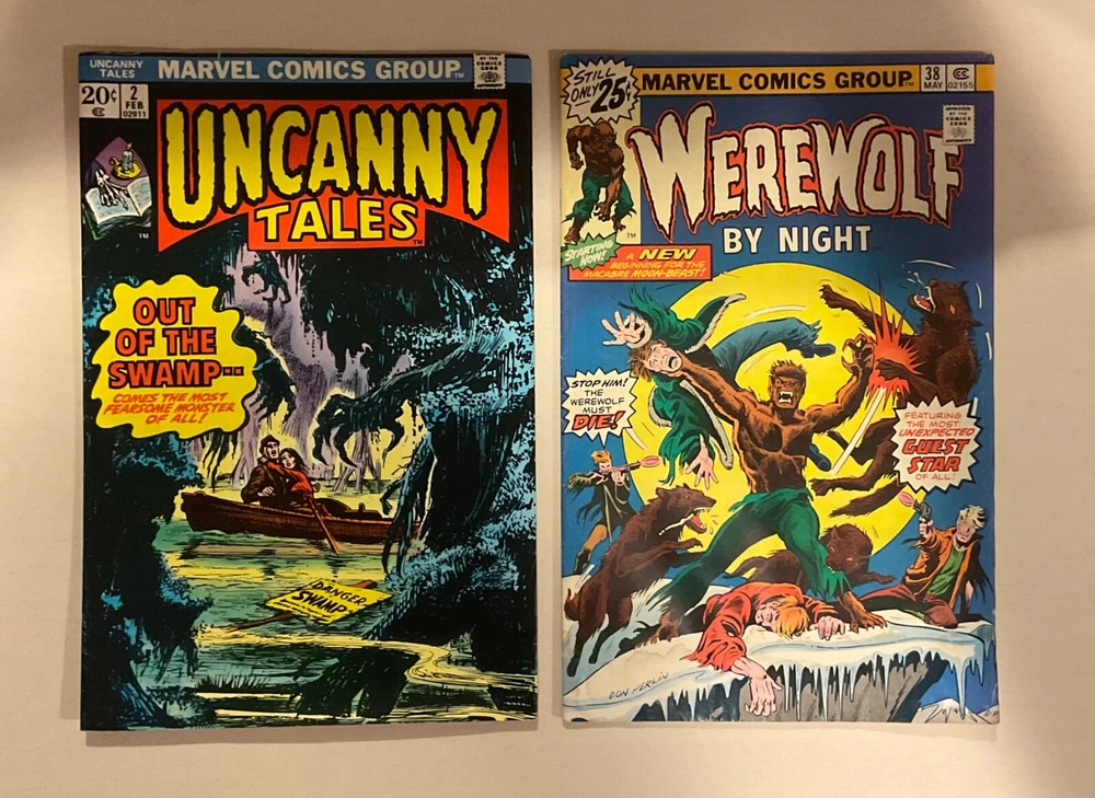 15 Horror/Monster Books ,all Books are either Very Good /Great or NM === with House of Secrets Foil & Swamp Thing 33 W/ White Pages, Marvel Chillers # 6 In NM ,Swamp Thing # 1 1977, # 67 in Great Condition ,,THE Tomb Of Dracula # 30 in Great/NM all clean inside,Tomb Of Dracula # 33 in NM , WEREWOLF BY NIGHT # 8 in VG/Great all Clean inside, # 31 VG/Great all pages all Clean , ,,all books have all pages and will Ship and package with Care and Always Respect to Secure the Safety and Condition of the Comics ,ALWAYS DOUBLE BOARDED AND BAGGED == 15 Books