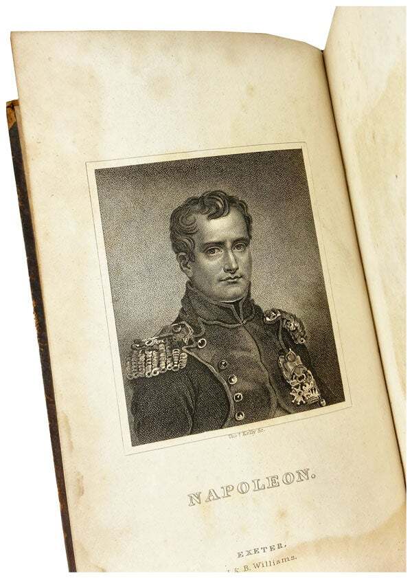 The Life of Napoleon Buonaparte, Emperor of the French. With a Preliminary View of the French Revolution [Two Volume Set] Author: [Walter Scott] Title: The Life of Napoleon Buonaparte, Emperor of the French. With a Preliminary View of the French Revolution [Two Volume Set] Publication: Exeter, MA: J. & B. Williams, 1828 Description: Very Good. Exeter, MA: J. & B. Williams, 1828. Two volumes; octavos; contemporary gilt-tooled calf, gilt spines with black spine labels, all edges marbled; xvi,[19]-494; xii,[13]-414,lxivpp.; engraved portrait frontispiece at head of Vol. I, text printed in double columns. Leather rather dried, spines darkened, uneven dampstaining along bottom margins of both textblocks, old brief tape reinforcement to hinges, else a Very Good, still quite presentable set, complete despite error in pagination in Vol. I. Seller ID: 28505 Subject: 18th Century, 19th Century, Biography / Memoir, European History, France / French Writers Capitol Hill Books is a used bookstore located on historic Capitol Hill in Washington DC, with three floors of quality used books, first editions, and rare books. [Note: Our online inventory is stored and managed at a separate location from at our brick and mortar shop. If you have a question about an item listed online, please send a direct message here rather than calling the store so that we can make sure someone familiar with the item in question can respond.] Terms Books described only as First Editions are First Printings unless otherwise specified. All items are guaranteed to be as described or they may be returned within 30 days of receipt for a full refund. All orders ship within two business days. Standard mail is USPS Media Mail. Expedited and international shipping are also available (please contact for estimates). We offer combined shipping on multiple orders. This listing was created by Bibliopolis.