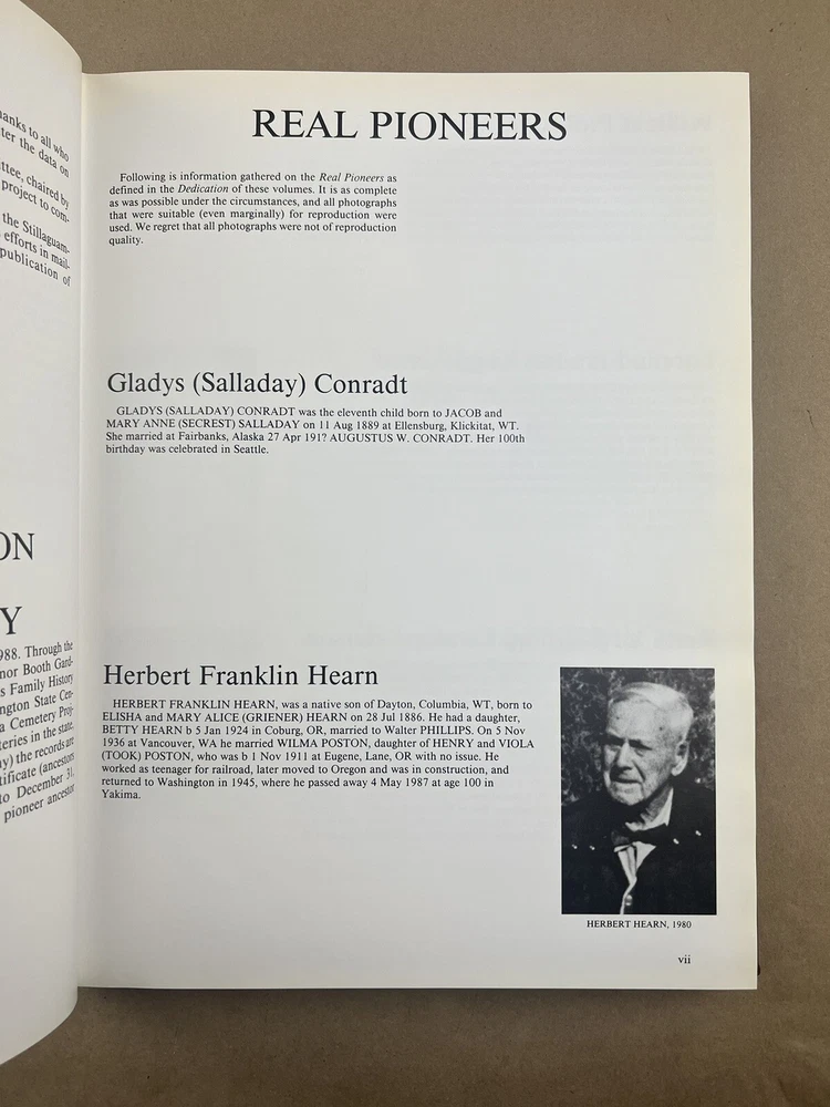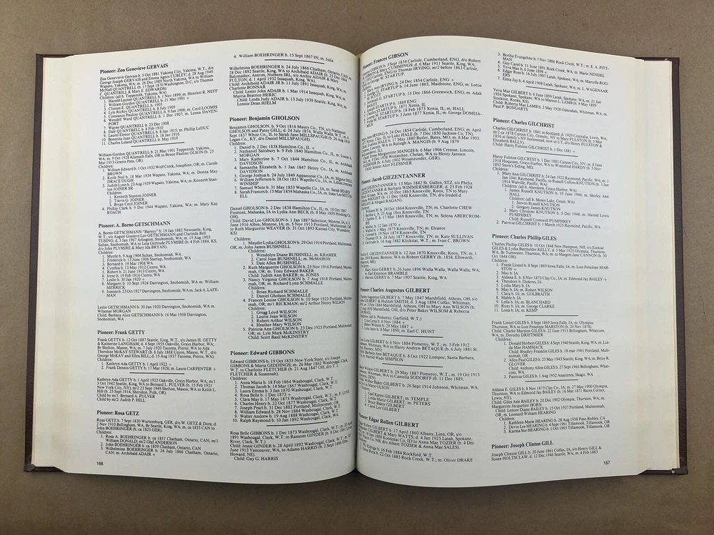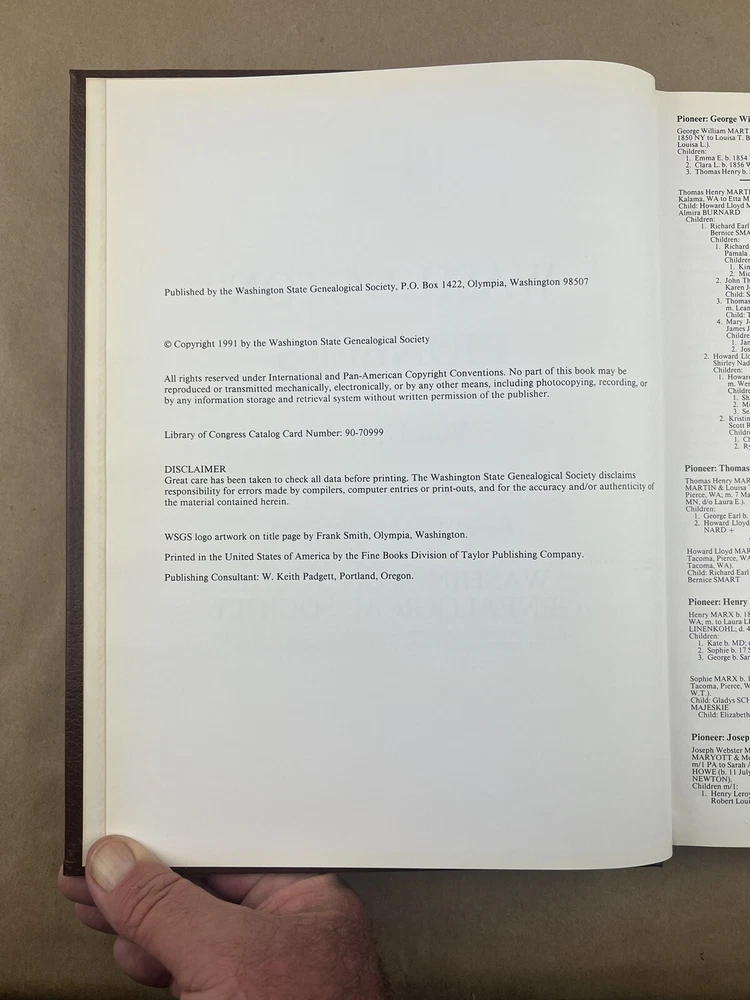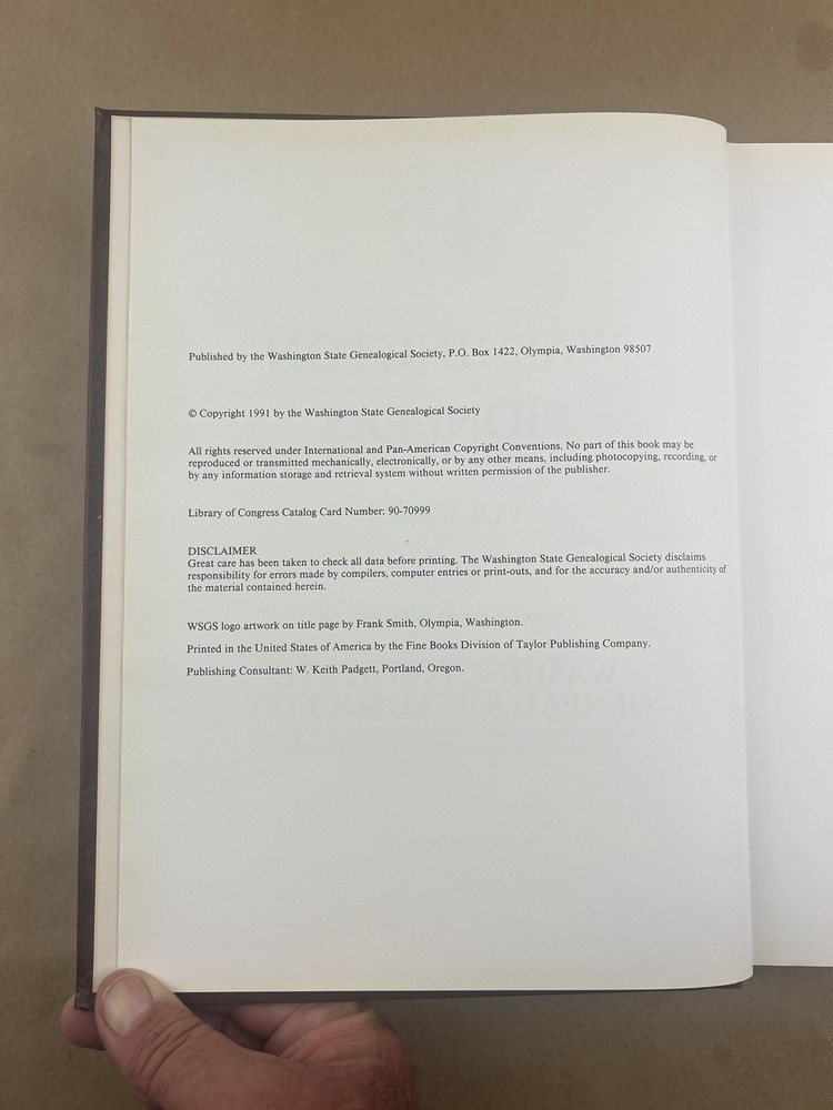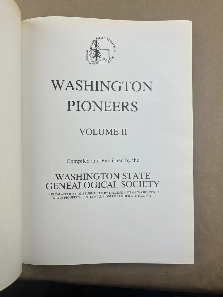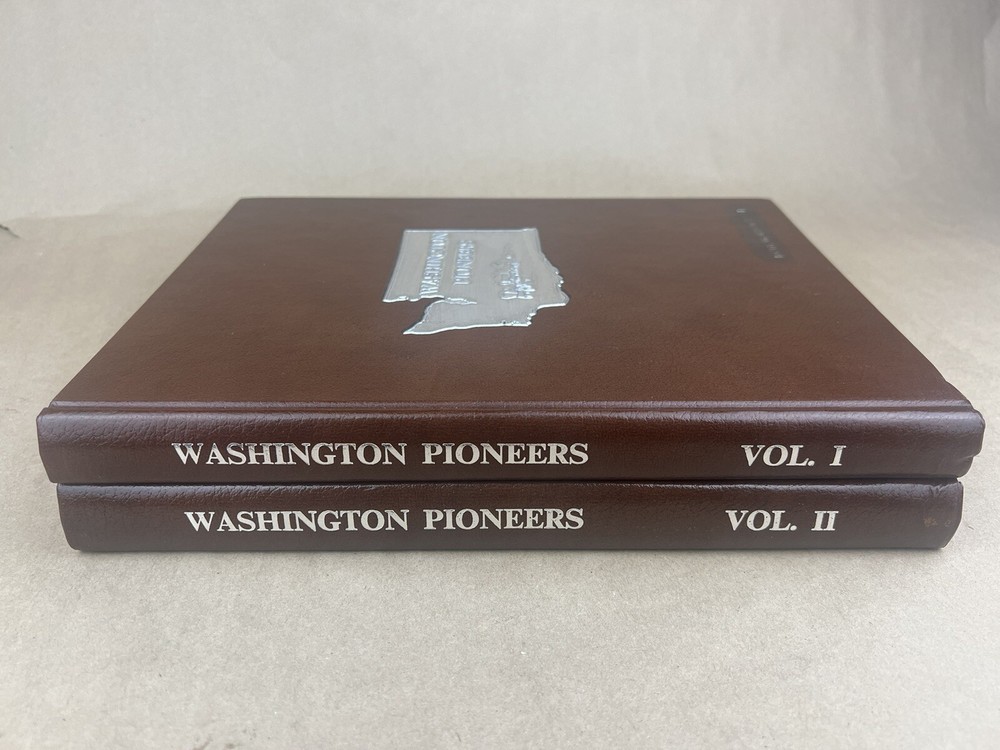 This hardcover book titled "Washington Pioneers: Volumes 1&2" is a special edition published by the Washington State Genealogical Society in 1991. With 648 pages, this book is a great source of information for anyone interested in genealogy and the history of Washington State. The book is beautifully bound in faux leather, and has a vintage feel to it. It measures 9.25 inches in length, 12.25 inches in height, and is 2 inches wide. The book is written in English, and features biographies and true stories about the pioneers who settled in Washington State. This book is a must-read for young adults and adults who are interested in the history of Washington. Faux Leather Hardcovers in Very Good condition. Minimal edge/shelf wear. Previously owned but seemingly unread. Tight binding, bright cover, and no writing inside. Nice reading copies. Review pictures for condition. Please ask any questions before purchase.