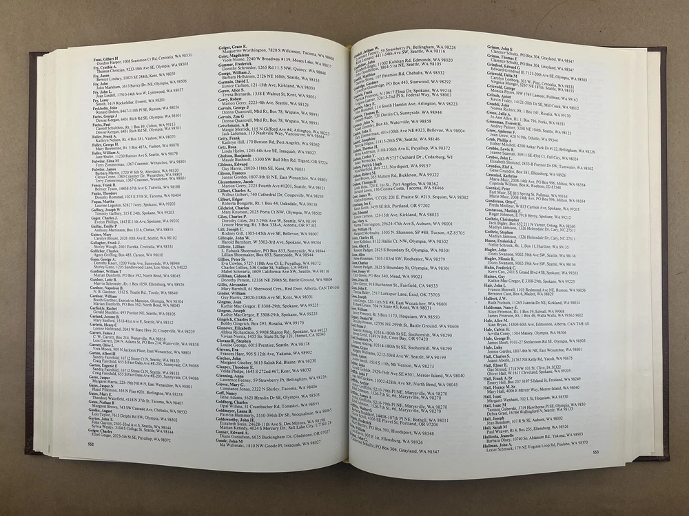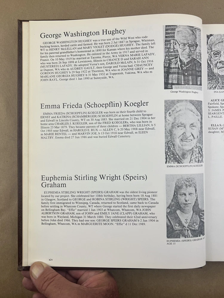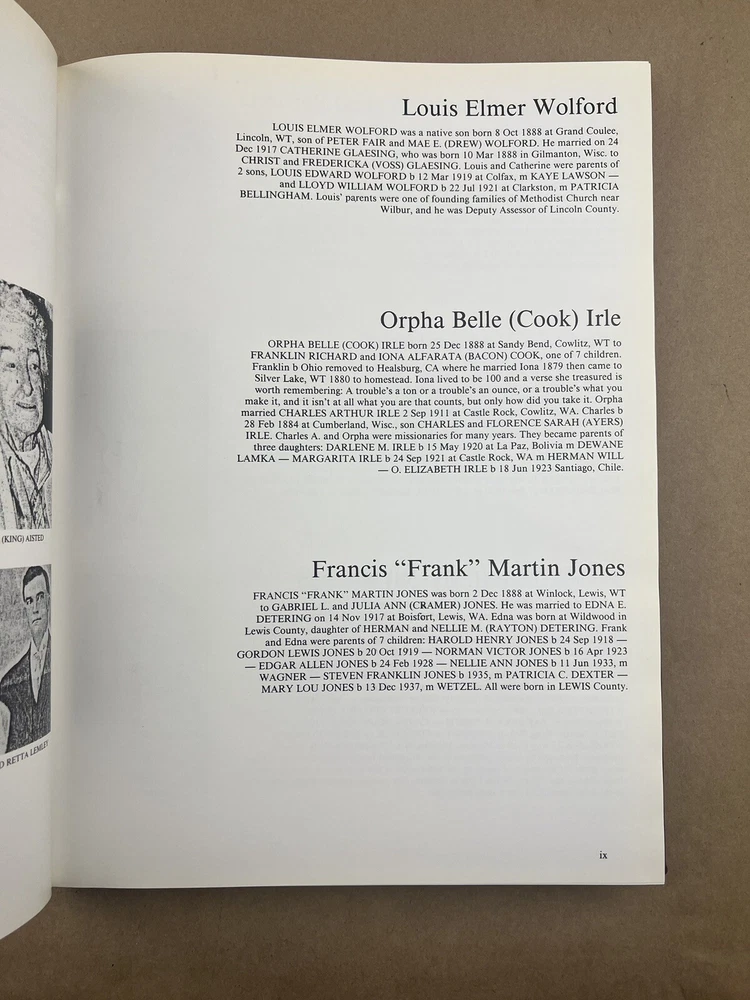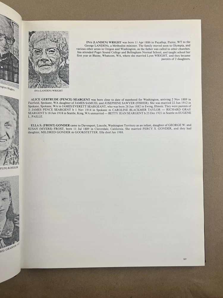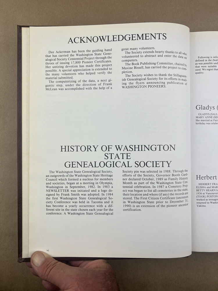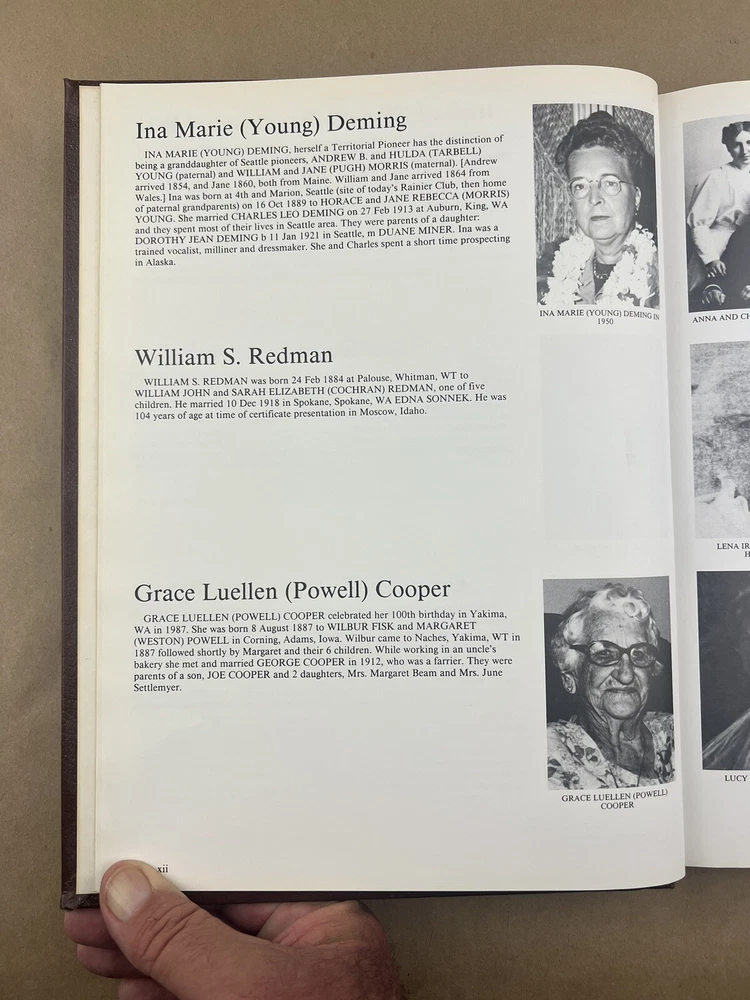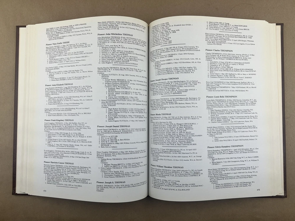 This hardcover book titled "Washington Pioneers: Volumes 1&2" is a special edition published by the Washington State Genealogical Society in 1991. With 648 pages, this book is a great source of information for anyone interested in genealogy and the history of Washington State. The book is beautifully bound in faux leather, and has a vintage feel to it. It measures 9.25 inches in length, 12.25 inches in height, and is 2 inches wide. The book is written in English, and features biographies and true stories about the pioneers who settled in Washington State. This book is a must-read for young adults and adults who are interested in the history of Washington. Faux Leather Hardcovers in Very Good condition. Minimal edge/shelf wear. Previously owned but seemingly unread. Tight binding, bright cover, and no writing inside. Nice reading copies. Review pictures for condition. Please ask any questions before purchase.