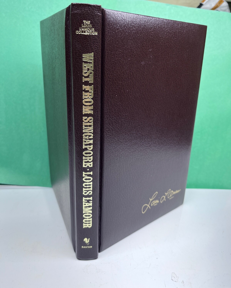 MAKE ME AN OFFER!!!!!! This rare leatherette edition hardcover book titled "West from Singapore" by Louis L'Amour, published by Bantam Books in 1987. The novel is a work of fiction in English, set in the Western genre with a focus on frontier life. The book features faux leather binding, making it a vintage collectible with 190 pages of narrative. It is not signed or personalized, and is a great addition to any enthusiast's collection of classic western literature. #WesternBooks #TheRifleMan #TVWesterns #Rodeos #GunSmoke #WagonTrain #SteveMcQueen #WantedDeadOrAlive #LouisLamour #OldBooks #Cartwrights #DanBlocker