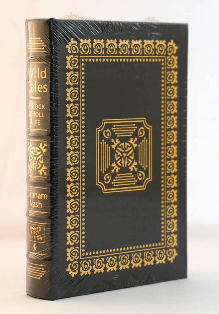 Wild Tales A Rock & Roll Life SIGNED BY Graham Nash and FACTORY SEALED ( Easton Press ) Book features: Easton Press Full Genuine Leather Hubbed Spine Accented With 22 kt. Real Gold Satin Ribbon Page Marker Distinctive Cover Design Gilded Page Edges to Protect Against Humidity High-Quality Acid - Free paper Smyth-Sewn Pages Silk-Moire End eaves Make sure to see my other auctions as I have dozens of Easton Press signed First editions!