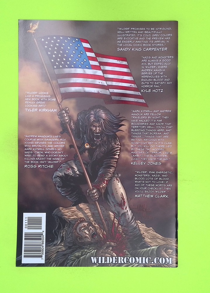 Over 40 years of experience in the comic book hobby. Regular dealers at northern east coast conventions. You can trust that you will be getting a quality product. 100,000+ Comics Wide selection of comics, from golden to modern age, catering to all types of collectors. Shipped Secure Sturdy cardboard packaging, bagged and waterproof. Customer First 100% satisfaction guarantee. Free returns. "Christo and James represent the Creme of Comic book Dealers - the kind of guys I like to deal with across the counter! And I have!!!" - STERANKO "December 1944: Private Roy Wilder and his fellow U.S. soldiers flee through the Ardennes Forest pursued Nazi storm troopers. Wilder falls as his brothers die in a hail of enemy lead. Wounded and helpless, he finds unexpected salvation as savage, unnatural howls tear the night and the full moon glistens off the blood-soaked snow. Wilder's destiny is forever changed and the Nazis face a deadly new foe. Cover A"