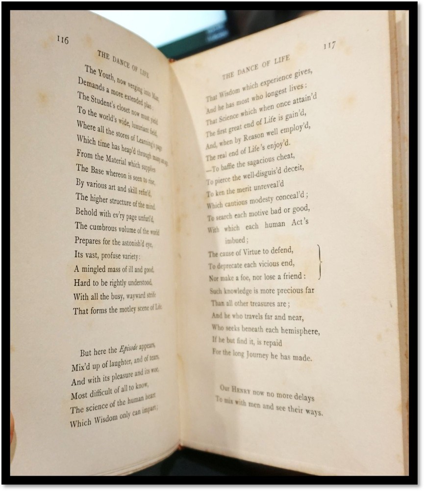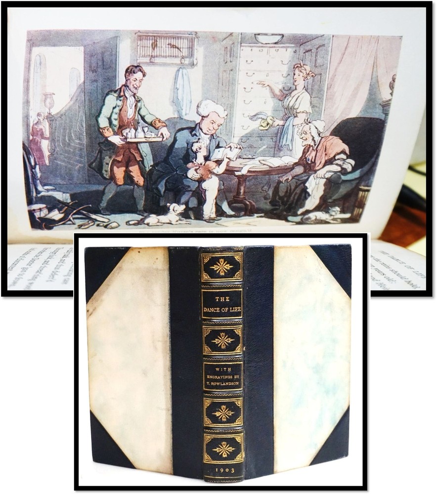 Building Your Great Collection; One Fine Book at a Time The Dance of Life: A Poem. [Satire: English Society] by the author of Doctor Syntax [William Combe] New York: D. Appleton & Company, 1903 Half dark blue leather to light blue marbled boards; 5 raised spine bands; with gilt ornaments and titles; top edge gilt; matching marbled endpages. 6.75 inches; vii, 2-244 pages with 24 inserted color engravings by Thomas Rowlandson plus a tissue-guarded frontispiece and an engraved title page. First published in 1817; First Edition, thus. The bindings are very tight and square. Text is clean; even age-toning with occasional light spotting. Minimal shelf handling wear Very Good / No Dust Jacket As Issued. Engravings by Thomas Rowlandson. A social satire following the author’s popular The English Dance of Death It explores human nature and social class with humor, mirroring Combe's typical style and his previous works featuring the character Dr. Syntax. Like Dance of Death, this poem is now accompanied by illustrations by Thomas Rowlandson, known for his vibrant caricatures. Together, they form a playful yet pointed critique of life’s various stages, from youth to old age, wrapped in an observational narrative. This combination of text and image was popular in its time, providing both entertainment and subtle social commentary on British society in the early 19th century. [Adapted from online resources] And Check out our other items ! Member of ABAA [American Booksellers Antiquarian Association] FABA [Florida Antiquarian Booksellers Association] IOBA [International Online Booksellers Association] The Ephemera Society of America Terms Guarantee We tend to be conservative in our grading, but even the best booksellers make an occasional mistake. Our books, and ephemera are described using AB Bookman standards. Our Guarantee: All items will be received as advertised and in the condition described. Any item is returnable for any reason within 30 days of receipt (prior notice appreciated). If you have questions regarding our description of any item, we encourage you to contact us prior to buying. We are members of the ABAA (Antiquarian Booksellers Association of America) and the Independent Online Booksellers Association (IOBA), and we adhere to these associations' strict ethical guidelines and conditions of sale. Shipping Standard shipping is by USPS Media Mail. Delivery typically takes 4 – 8 days (and sometimes longer) depending upon destination. We are happy to upgrade shipping to Priority Mail or to arrange overseas shipping to most foreign countries. Please choose that at checkout. Feedback We leave feedback for buyers once they have posted feedback for us. If you are unhappy with any aspect of a transaction with us, please contact us immediately. Our priority is to make customers happy and to resolve problems as promptly as possible. This listing was created by Bibliopolis.