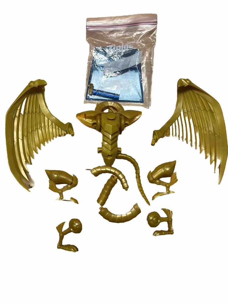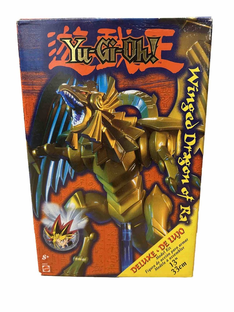Winged Dragon of Ra Deluxe Figure Kit Incomplete in Box Some damage to box, Kit opened and missing head + instructions, but in good condition! Perfect for spare parts. See pictures for more. This Winged Dragon of Ra Deluxe Figure Kit is a must-have for any Yu-Gi-Oh! fan. This figure is incomplete in box but is perfect for spare parts or custom work. The kit features an action figure of the Winged Dragon of Ra, a character from the popular anime and manga franchise. The figure is manufactured by Mattel and is of high quality. It is an action figure and perfect for all things action-packed. The kit is from 2003 and is a great addition to any collection. Get your hands on this deluxe figure today and relive the excitement of the Yu-Gi-Oh! TV show.