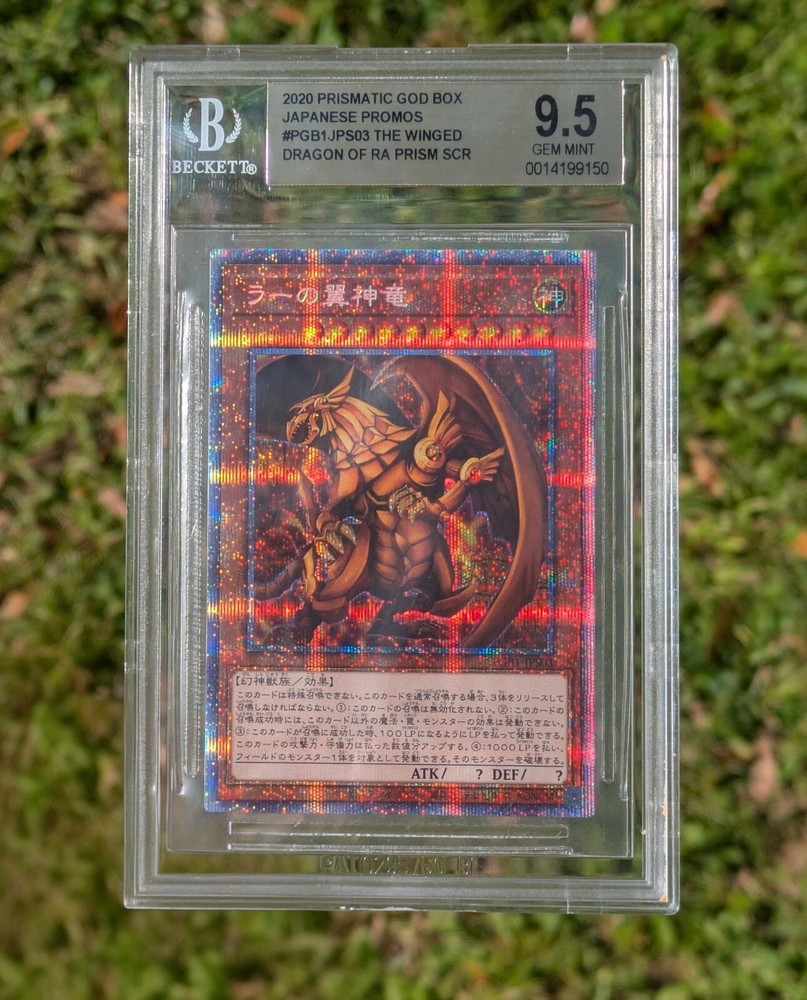This rare and highly sought-after Yu-Gi-Oh card, the Winged Dragon Of Ra Pgb1-Jps03, is a must-have for any serious collector. With its stunning prismatic holographic design and BGS rating of 9.5