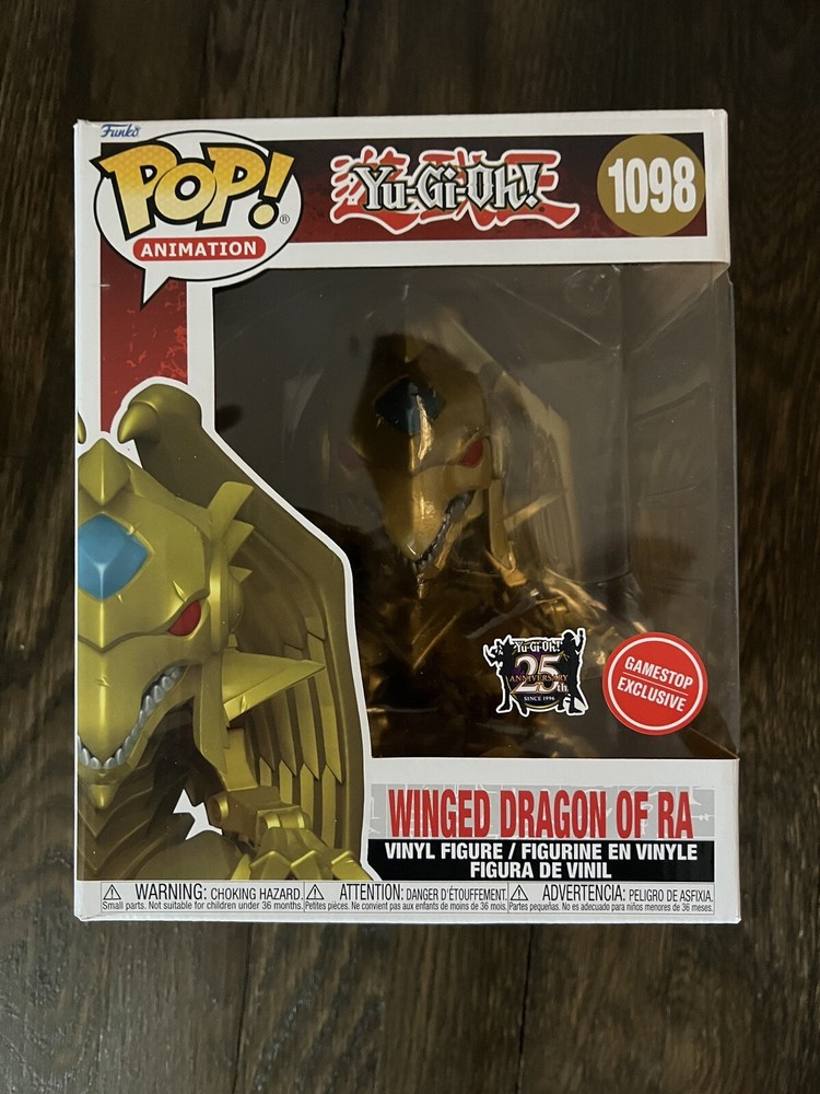 Winged Dragon of Ra Gamestop Exclusive Yu-Gi-Oh! 6" Funko POP! Animation #1098. Winged Dragon Of Ra Funko Pop! Gamestop Exclusive Yu-gi-oh Metallic In Hand New. Box is as pictured. Damage to box is from Gamestop delivery.