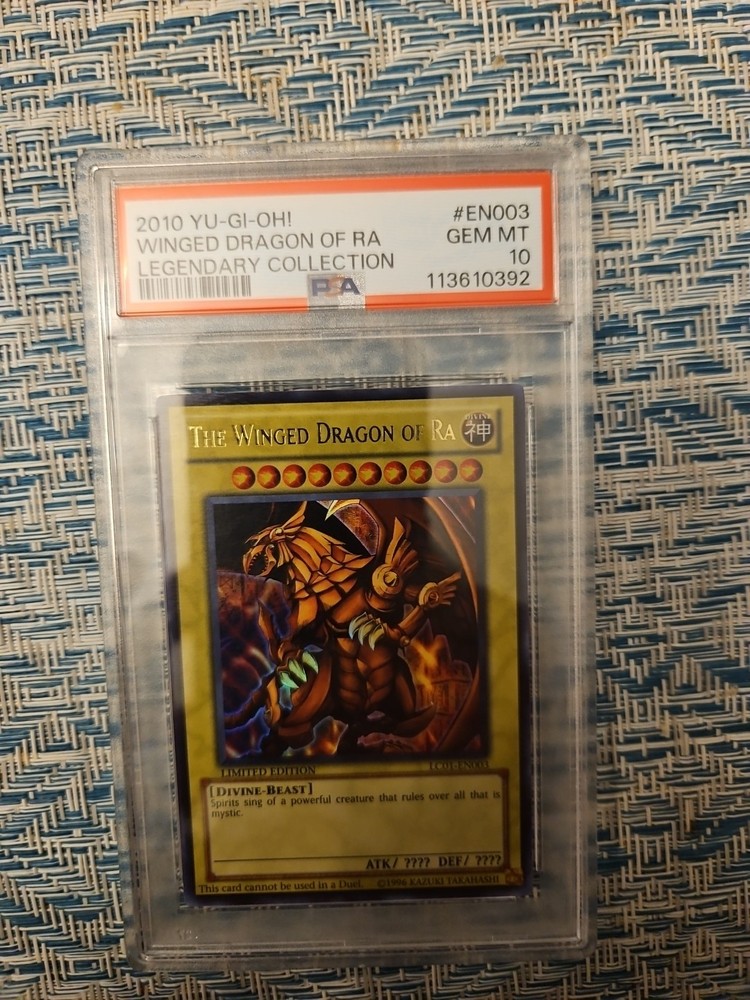 This ultra rare Winged Dragon of Ra is a must-have for serious collectors! The PSA 10 grading proves its flawless condition, and the divine-beast type makes it a powerful addition to any deck. The limited edition status and iconic Marik Ishtar connection add serious value—definitely worth it for Yu-Gi-Oh fans!