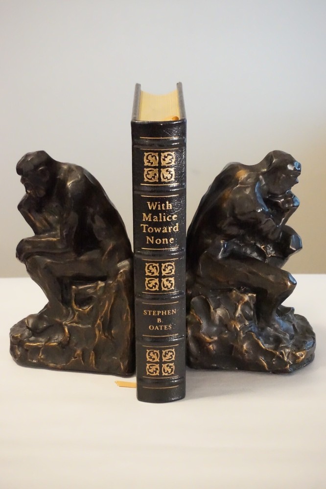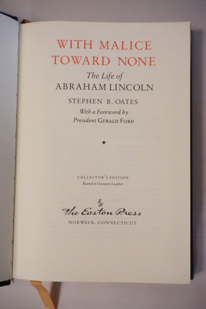 Wonderful vintage copy of With Malice Towards None by Stephen B. Oates. Published in 1977 by Easton Press of Norwalk, Connecticut. The leatherbound book is in very good condition for its age, with minimal wear to the cover and edges. Great find at a great price! Please note the S&H charges, which include USPS postage, materials, and handling. Pictured bookends are not included in the sale. View our other eBay listings at Weiss Lane Books! https://www.ebay.com/str/Weiss-Lane-Books