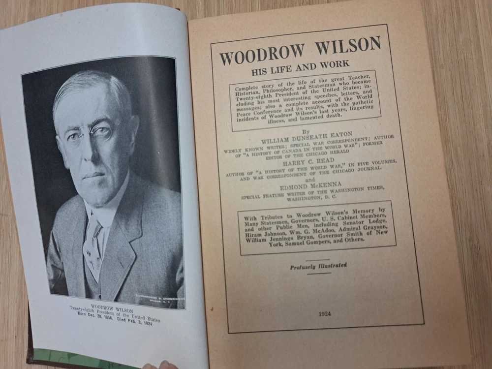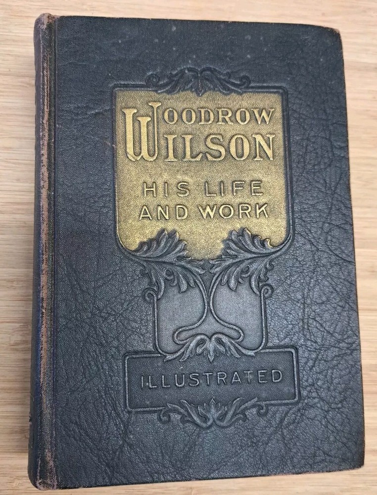 This antique leather hard cover book titled "Woodrow Wilson His Life And Work" is a must-have for any historical enthusiast. Filled with beautiful illustrations and captivating content, this book provides a detailed account of the life and work of one of America's most influential presidents. Written by William Dunseath Eaton and published by J. Thomas in 1924, this original copy is a rare find. The book covers a range of topics including Wilson's biography, autobiography, and his impact on American history. With its unique attributes and stunning binding, this book is a valuable addition to any collection. This book is in very good condition, the binder is very tight