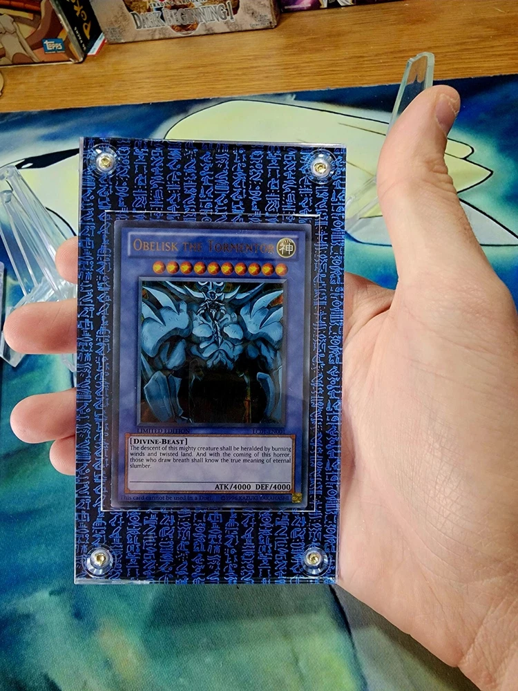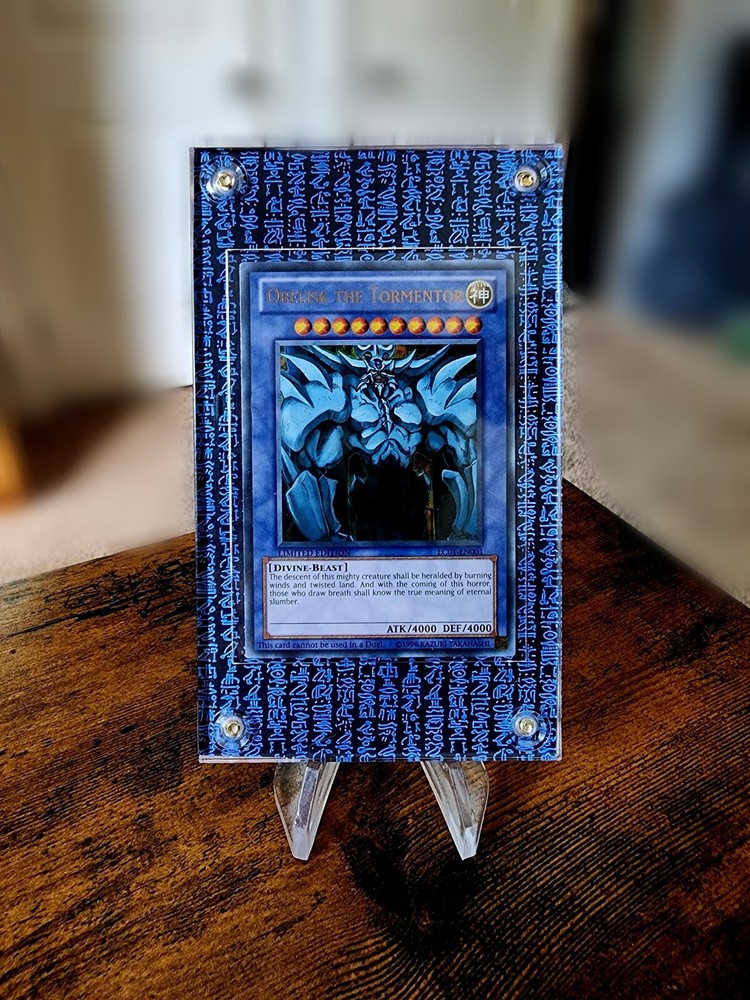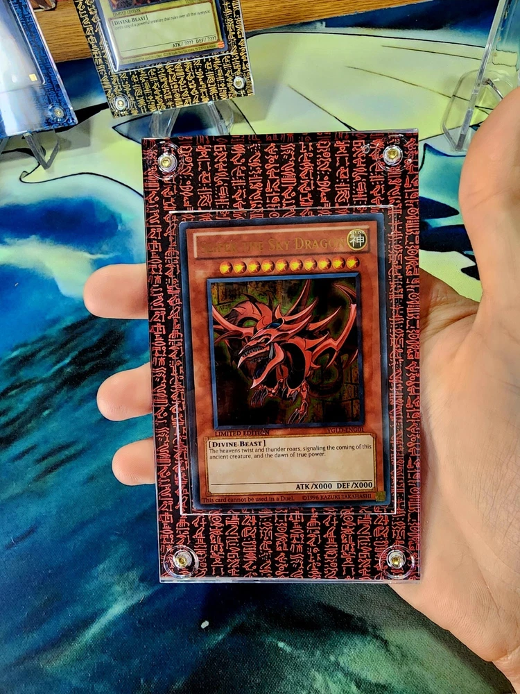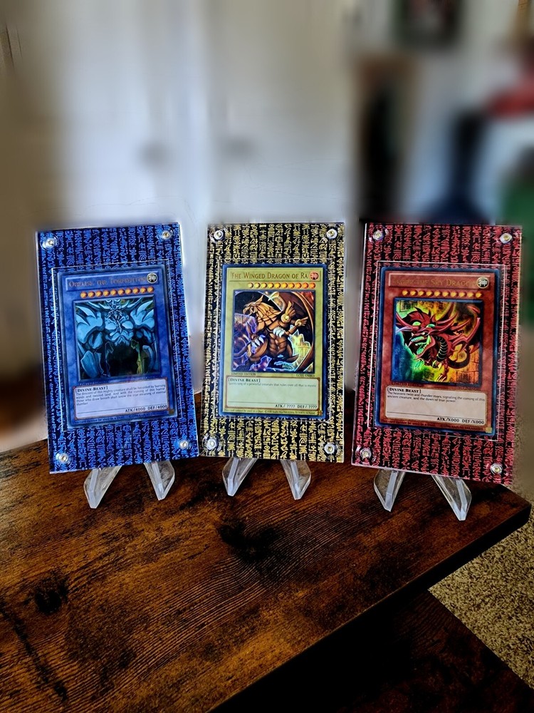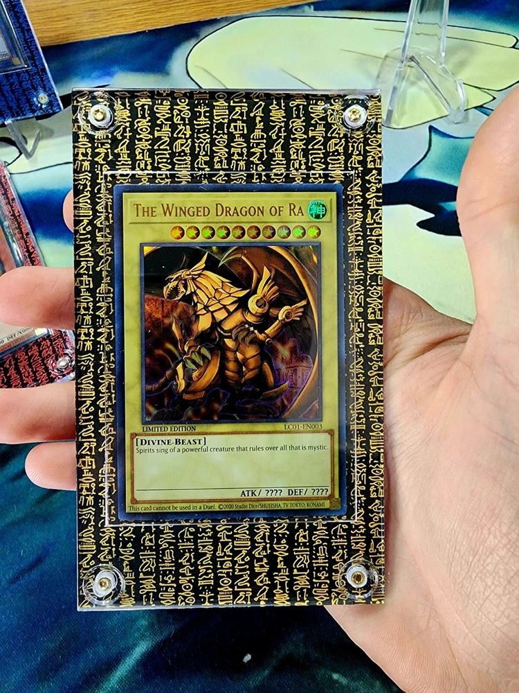 These custom prismatic Yugioh case slabs are an awesome way to display your Egyptian God cards! The detailed holographic hyrogliphics and extended artwork backgrounds make them look epic, and the Ultra Pro One-Touch cases keep everything secure. Even though the cards aren’t included, these are perfect for collectors who want to showcase their rare pulls in style—definitely a must-have for any serious Yugioh fan.