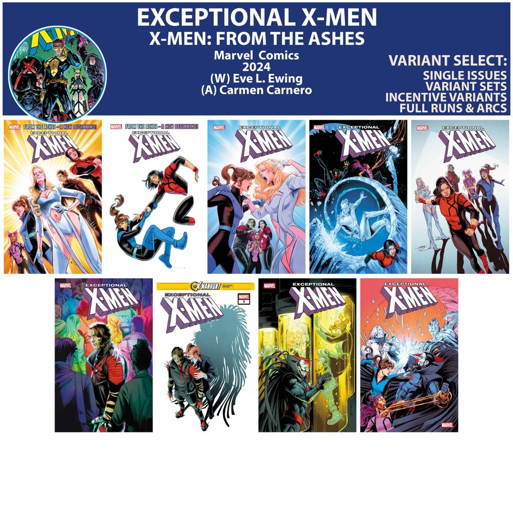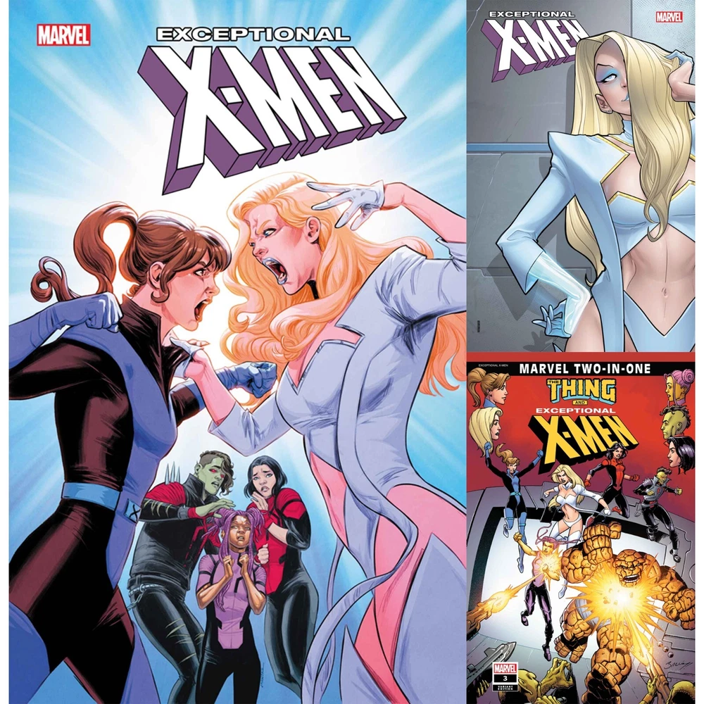 The individual book options are: EXCEPTIONAL X-MEN ARC 1 (5 BOOKS) [EXCEPTIONAL X-MEN #1, EXCEPTIONAL X-MEN #2, EXCEPTIONAL X-MEN #3, EXCEPTIONAL X-MEN #4, EXCEPTIONAL X-MEN #5] EXCEPTIONAL X-MEN ARC 1 BALDEON VARIANTS (5 BOOKS) [ EXCEPTIONAL X-MEN #1 DAVID BALDEON BRONZE VARIANT, EXCEPTIONAL X-MEN #2 DAVID BALDEON BRONZE VARIANT, EXCEPTIONAL X-MEN #3 DAVID BALDEON BRONZE VARIANT, EXCEPTIONAL X-MEN #4 DAVID BALDEON BRONZE VARIANT, EXCEPTIONAL X-MEN #5 DAVID BALDEON BRONZE VARIANT] EXCEPTIONAL X-MEN #1 VARIANT SET (7 BOOKS) [EXCEPTIONAL X-MEN #1, EXCEPTIONAL X-MEN #1 DAVID BALDEON BRONZE VARIANT, EXCEPTIONAL X-MEN #1 ELIZABETH TORQUE VARIANT, EXCEPTIONAL X-MEN #1 LEINIL YU GODZILLA VARIANT, EXCEPTIONAL X-MEN #1 LOGO VARIANT, EXCEPTIONAL X-MEN #1 ROSE BESCH VARIANT, EXCEPTIONAL X-MEN #1 SCOTT KOBLISH WRAPAROUND CONNECTING VARIANT] EXCEPTIONAL X-MEN #1 EXCEPTIONAL X-MEN #1 DAVID BALDEON BRONZE VARIANT EXCEPTIONAL X-MEN #1 EDGE FOIL VARIANT EXCEPTIONAL X-MEN #1 ELIZABETH TORQUE VARIANT EXCEPTIONAL X-MEN #1 LEINIL YU GODZILLA VARIANT EXCEPTIONAL X-MEN #1 ROSE BESCH VARIANT EXCEPTIONAL X-MEN #2 VARIANT SET (3 BOOKS) [EXCEPTIONAL X-MEN #2, EXCEPTIONAL X-MEN #2 DAVID BALDEON AXO VARIANT, EXCEPTIONAL X-MEN #2 TERRY DODSON DOOM VARIANT] EXCEPTIONAL X-MEN #2 MIGUEL MERCADO VARIANT [1:25] EXCEPTIONAL X-MEN #2 DAVID BALDEON AXO VIRGIN VARIANT [1:50] EXCEPTIONAL X-MEN #3 VARIANT SET (3 BOOKS) [EXCEPTIONAL X-MEN #3, EXCEPTIONAL X-MEN #3 DAVID BALDEON EMMA FROST VARIANT, EXCEPTIONAL X-MEN #3 MARK BAGLEY MARVEL TWO-IN-ONE VARIANT] EXCEPTIONAL X-MEN #3 CARMEN CARNERO VARIANT [1:25] EXCEPTIONAL X-MEN #3 DAVID BALDEON EMMA FROST VIRGIN VARIANT [1:50] EXCEPTIONAL X-MEN #4 VARIANT SET (4 BOOKS) [EXCEPTIONAL X-MEN #4, EXCEPTIONAL X-MEN #4 CHRIS CAMPANA ICEMAN VARIANT, EXCEPTIONAL X-MEN #4 DAVID BALDEON MELEE VARIANT, EXCEPTIONAL X-MEN #4 MARGUERITE SAUVAGE WINTER HOLIDAY VARIANT] EXCEPTIONAL X-MEN #4 AKA VARIANT [1:25] EXCEPTIONAL X-MEN #4 DAVID BALDEON MELEE VIRGIN VARIANT [1:50] EXCEPTIONAL X-MEN #5 VARIANT SET (4 BOOKS) [EXCEPTIONAL X-MEN #5, EXCEPTIONAL X-MEN #5 DAVID BALDEON KITTY PRYDE VARIANT, EXCEPTIONAL X-MEN #5 LEE GARBETT VARIANT, EXCEPTIONAL X-MEN #5 NICK BRADSHAW FANTASTIC FOUR HOMAGE VARIANT] EXCEPTIONAL X-MEN #5 DAVID BALDEON KITTY PRYDE VIRGIN VARIANT [1:50] EXCEPTIONAL X-MEN #6 VARIANT SET (5 BOOKS) [EXCEPTIONAL X-MEN #6, EXCEPTIONAL X-MEN #6 CHRIS CAMPANA TORCH! VARIANT, EXCEPTIONAL X-MEN #6 LEIRIX EMMA FROST VARIANT, EXCEPTIONAL X-MEN #6 MARK BROOKS ANIMATED-STYLE VARIANT, EXCEPTIONAL X-MEN #6 R.B. SILVA CONNECTING VARIANT] EXCEPTIONAL X-MEN #6 MARK BROOKS ANIMATED-STYLE VIRGIN VARIANT [1:50] EXCEPTIONAL X-MEN #7 VARIANT SET (3 BOOKS) [EXCEPTIONAL X-MEN #7, EXCEPTIONAL X-MEN #7 PEACH MOMOKO KIMONO VARIANT, EXCEPTIONAL X-MEN #7 RICKIE YAGAWA VARIANT] EXCEPTIONAL X-MEN #7 RIAN GONZALES VARIANT [1:25] EXCEPTIONAL X-MEN #8 VARIANT SET (3 BOOKS) [EXCEPTIONAL X-MEN #8, EXCEPTIONAL X-MEN #8 CHRIS GIARRUSSO MARVEL UNIVERSE CONNECTING WRAP VARIANT K, EXCEPTIONAL X-MEN #8 SAOWEE VARIANT] EXCEPTIONAL X-MEN #8 CHRIS GIARRUSSO MARVEL UNIVERSE CONNECTING BLUE LINE SKETCH WRAP VARIANT K [1:50] EXCEPTIONAL X-MEN #9 VARIANT SET (2 BOOKS) [EXCEPTIONAL X-MEN #9, EXCEPTIONAL X-MEN #9 FEDERICO VICENTINI VARIANT] EXCEPTIONAL X-MEN #9 PREMADE BAGS & BOARDS (SET OF 5) **5 BCW resealable modern bags and boards - our sets of books come packed in silver age bags with modern boards in sets up to 5 books in order to keep books safe and secure in both storage and shipping. You can include additional bags and boards with your order by adding this option to your cart. 1 set is 5 premade bags and boards.** "KATE PRYDE LEADS A TEAM OF ALL-NEW X-MEN! After the fall of Krakoa, Kate Pryde is trying to get as far away from all things X as she possibly can. She's just a regular-degular bartender now. Definitely NOT getting ready to head up an ALL-NEW TEAM of wayward young mutants while avoiding the watchful gaze of Emma Frost. Nothing in this title but work, dating and staving off depression. That's it. No never-before-seen EXCEPTIONAL X-MEN to see here!" Please read the entire listing and our store terms for details on shipping, bagging, and grading before purchasing. If you have any questions, please reach out to us, we are happy to assist you. Also check out the other books and collectables in our store and follow us to keep up on our latest offerings!