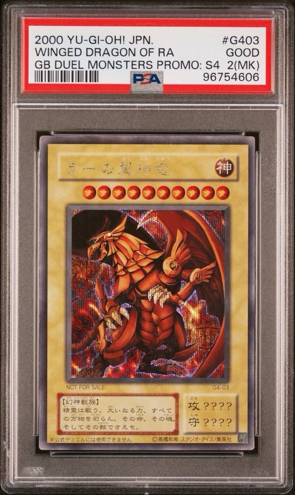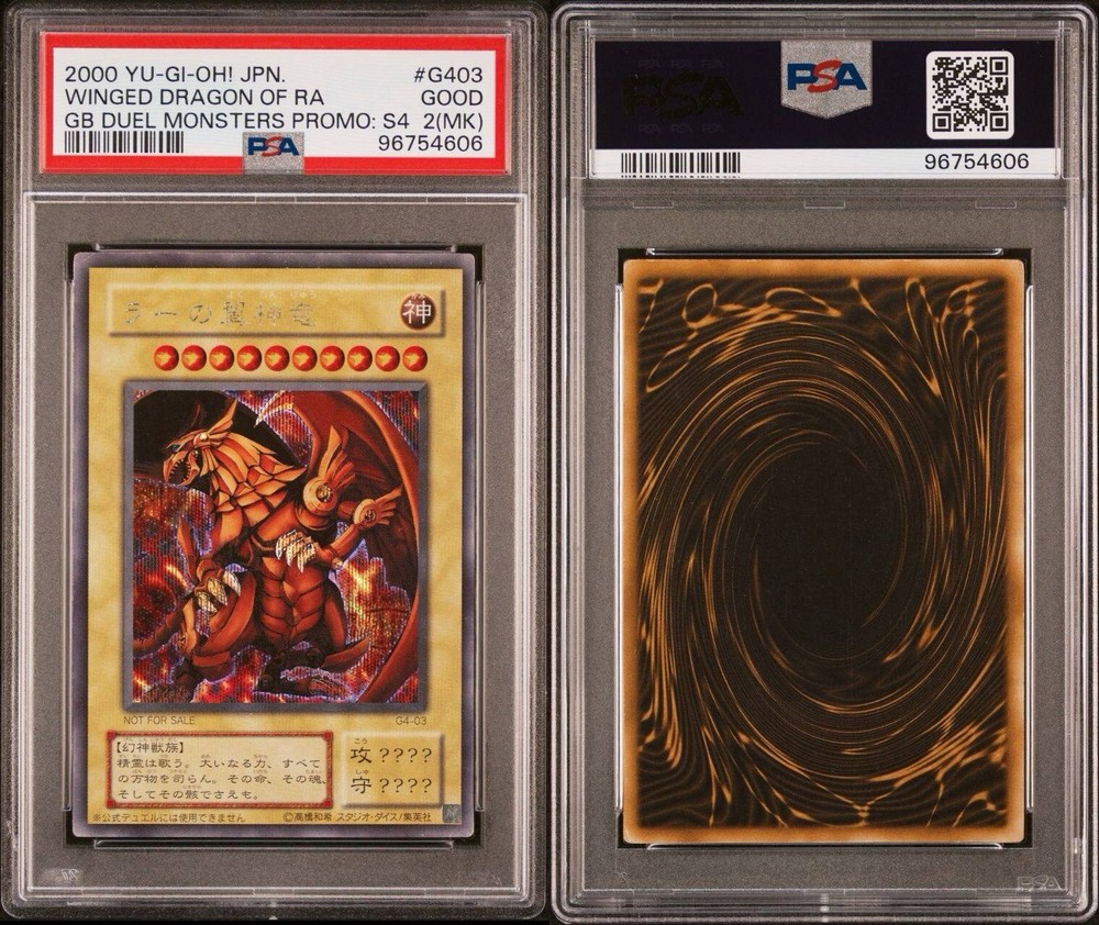 YU GI OH PSA 2(MK) WINGED DRAGON OF RA G4-03 GB DUEL MOSTERS PROMO :S4 JAP 2000 LA CARTA È CERTIFICATA PSA CON VOTO 2 ED È ESATTAMENTE COME VISIBILE NELLE FOTO! LA PLASTICA PSA PUÒ AVERE GRAFFI DI FABBRICA CHE NON INFLUISCONO SUL VALORE DELLA CARTA. X ULTERIORI FOTO NON ESITATE A CONTATTARMI! È ORIGINALE COME TUTTE LE CARTE CHE HO IN VENDITA! PER PIÙ ACQUISTI SI PAGA SEMPRE UN UNICA SPEDIZIONE E LA CARTA VERRÀ SPEDITA NEL MODO PIÙ PROTETTO POSSIBILE USANDO CARTONCINI E PACCO CON BOLLICINE! SONO MOLTO SERIO È SEMPRE DISPONIBILE PER INFO,FOTO O OFFERTE, NON ESITATE A CONTATTARMI IN QUALSIASI MOMENTO😀